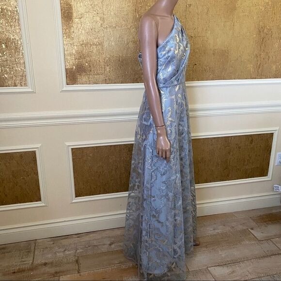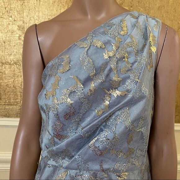 NEW Adrianna Papell metallic one shoulder lace gown 10