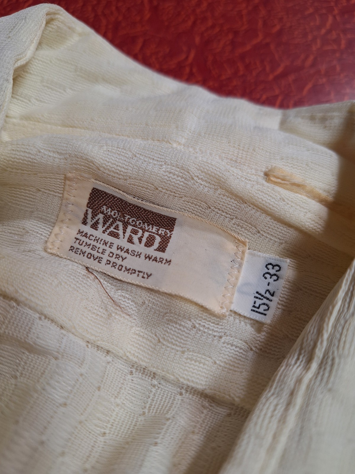 True VTG Mid-century 1960s 1970s Montgomery Ward Polyester L/S Shirt M/L Ivory