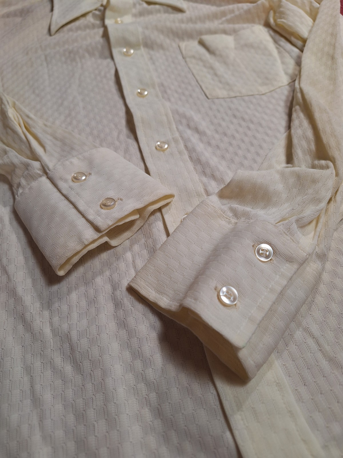 как выглядит True VTG Mid-century 1960s 1970s Montgomery Ward Polyester L/S Shirt M/L Ivory фото