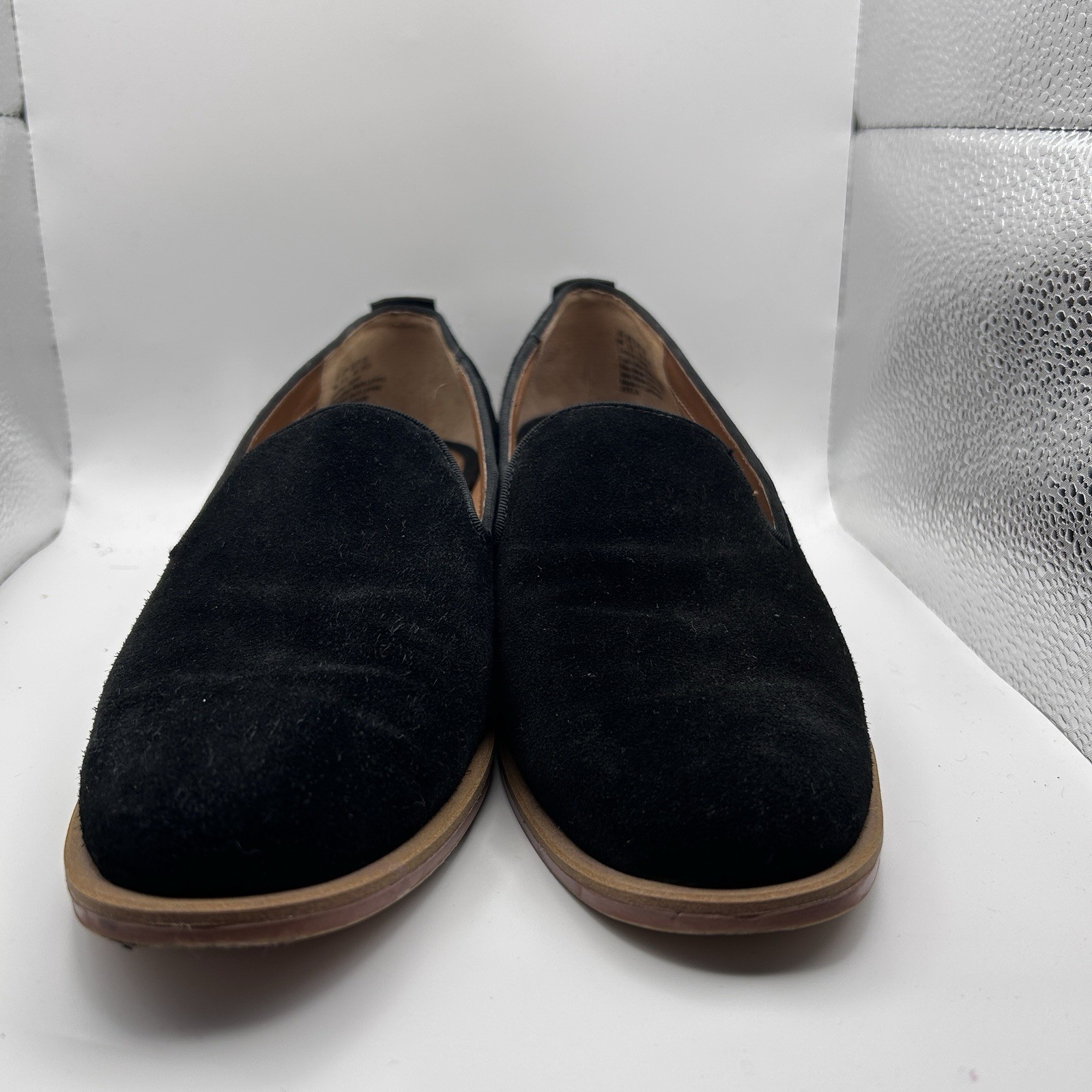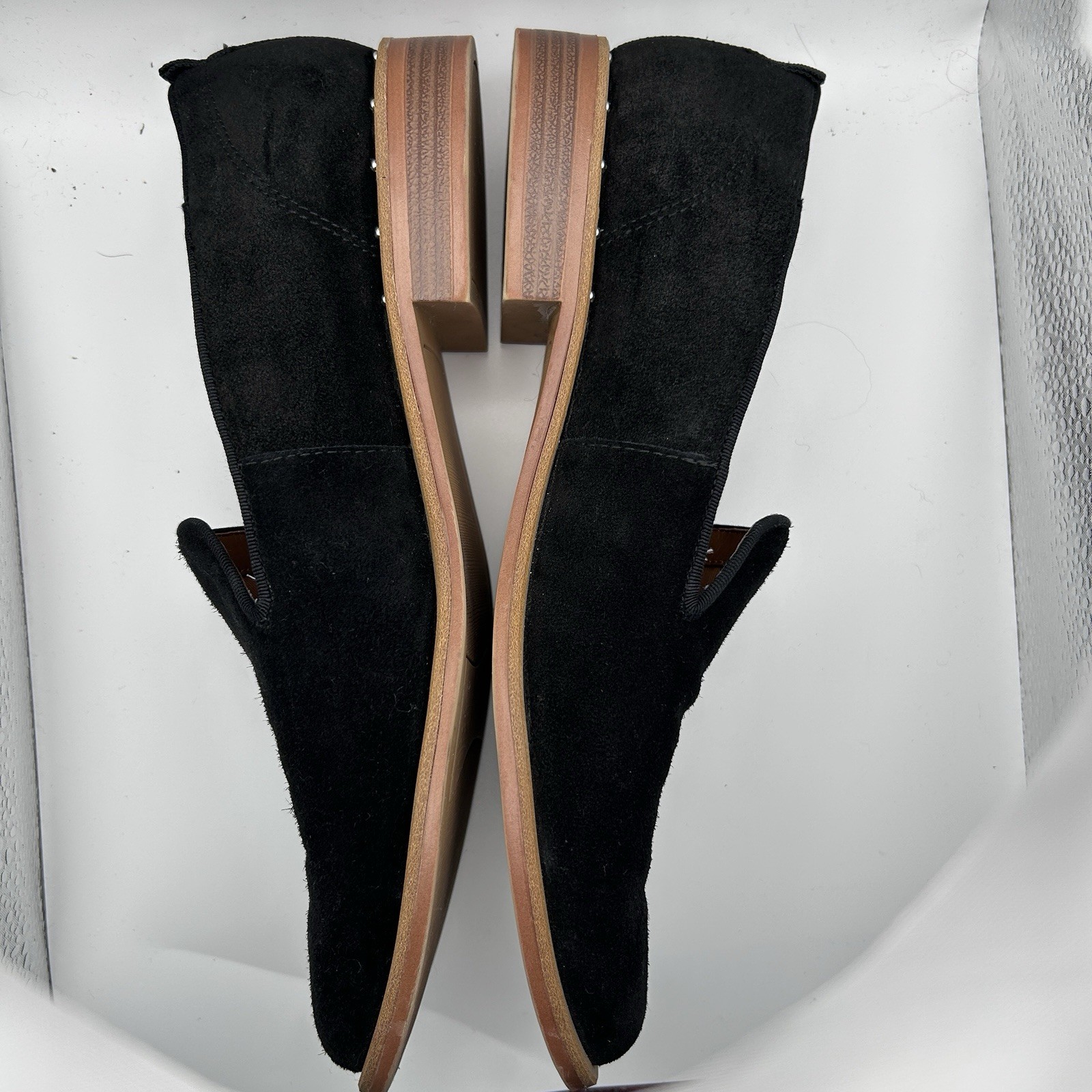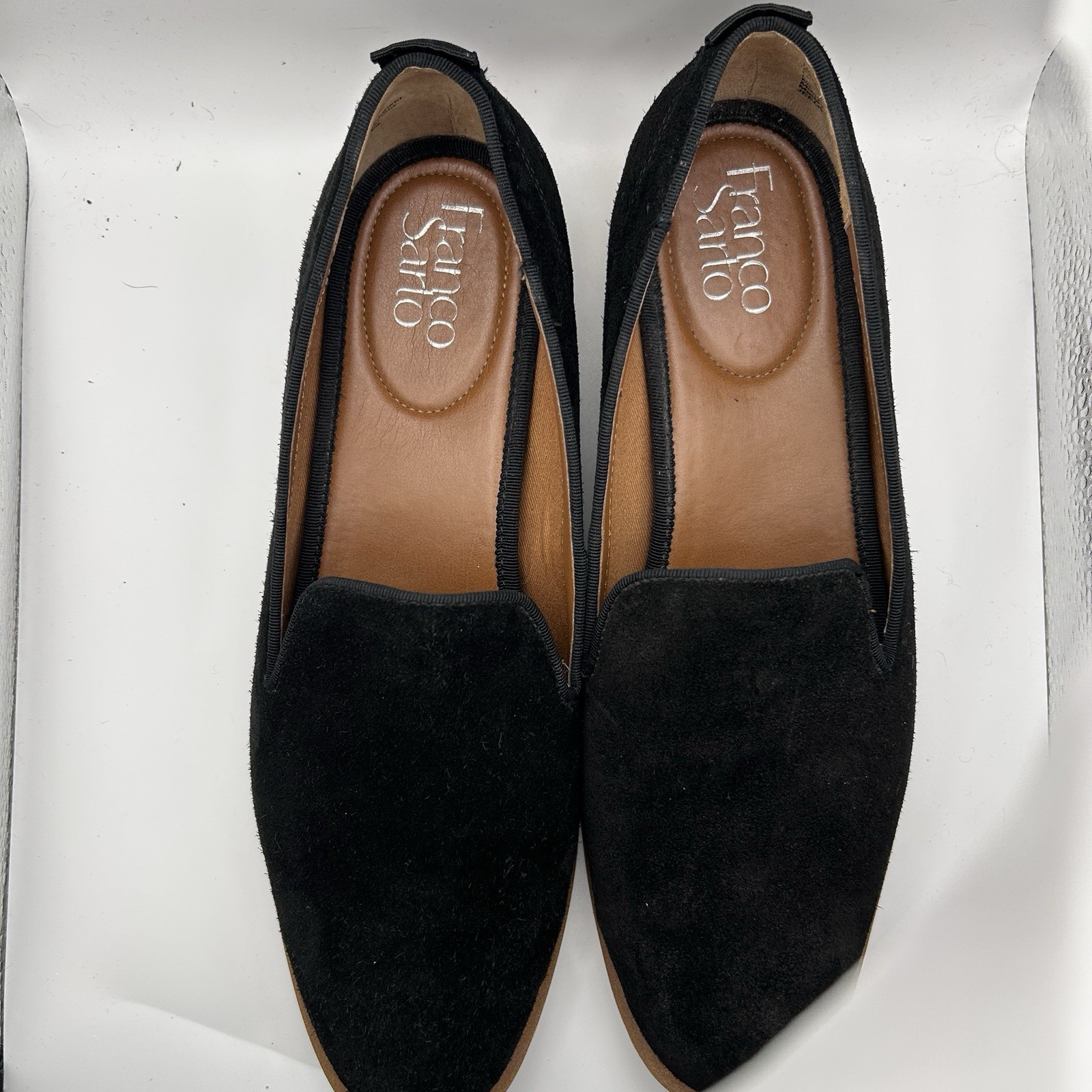 как выглядит Franco Sarto Ladies Size 9 Loafer Black Suede Upper studs on the heel фото