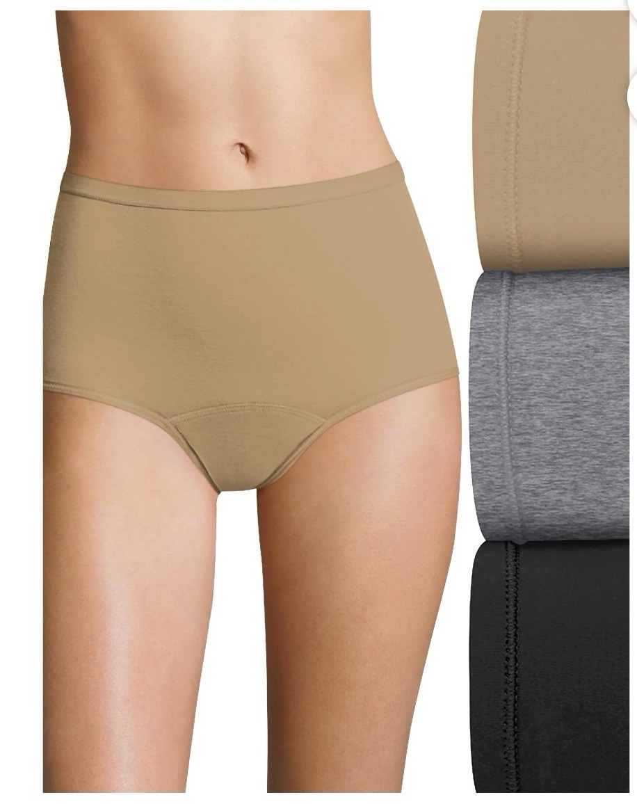 как выглядит Hanes Womens Comfort, Period Moderate Protection Briefs - Size 9/2XL - New 3 Pr фото