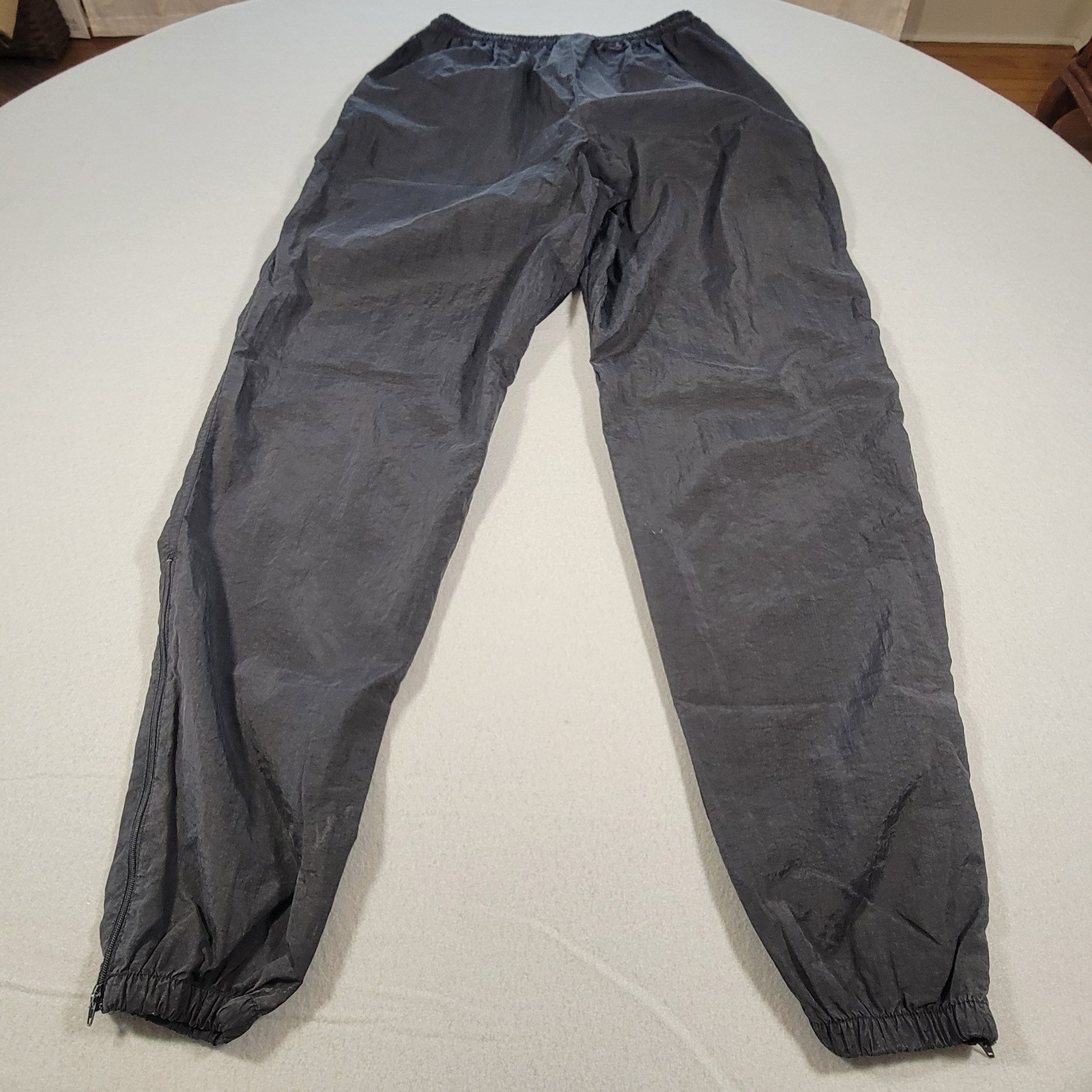 VTG 90s Nike Nylon Track Pants Black Warm Up Athletic Drawstring Zip Leg Youth L