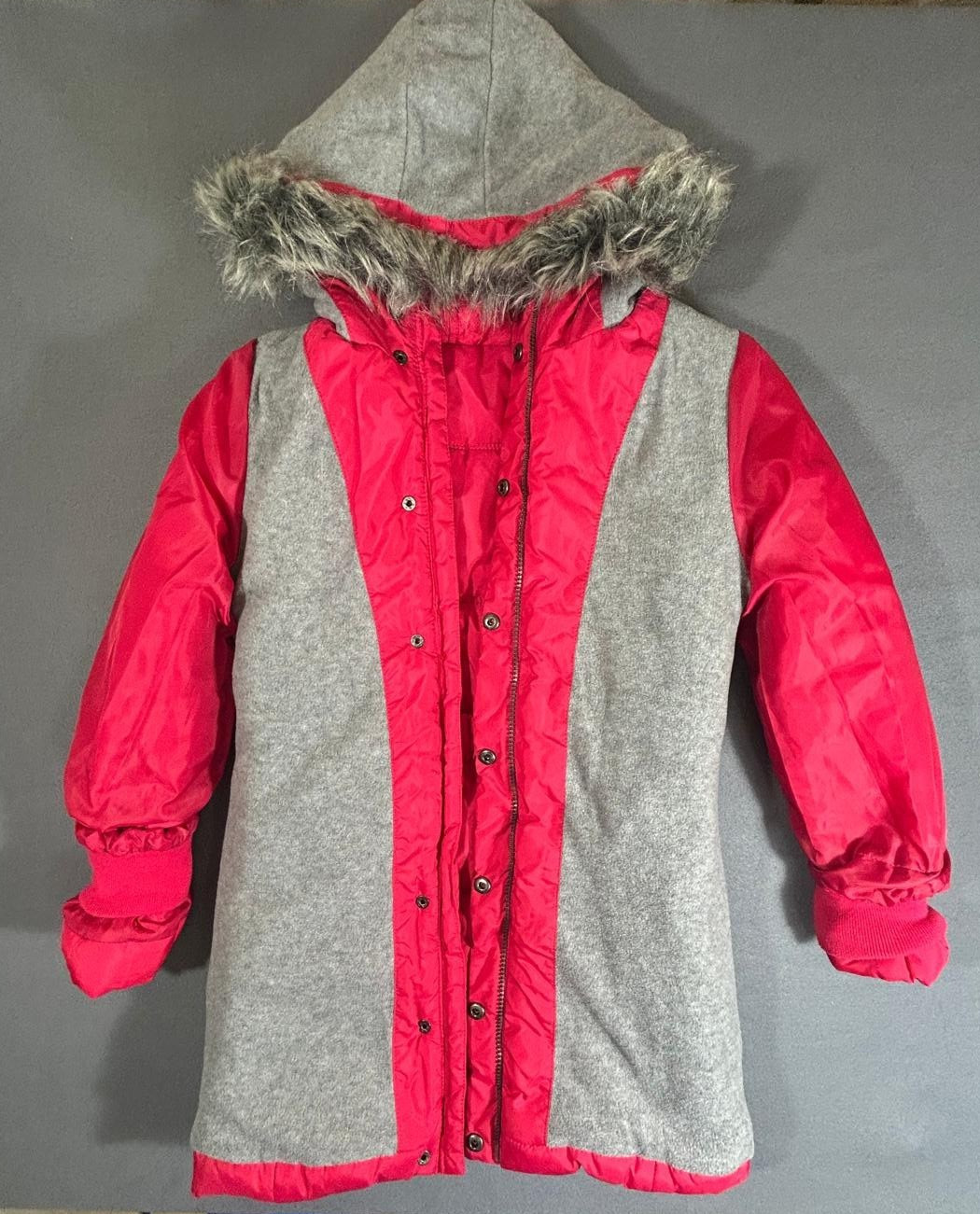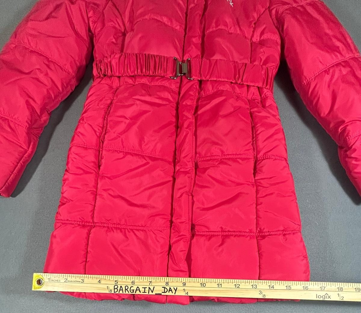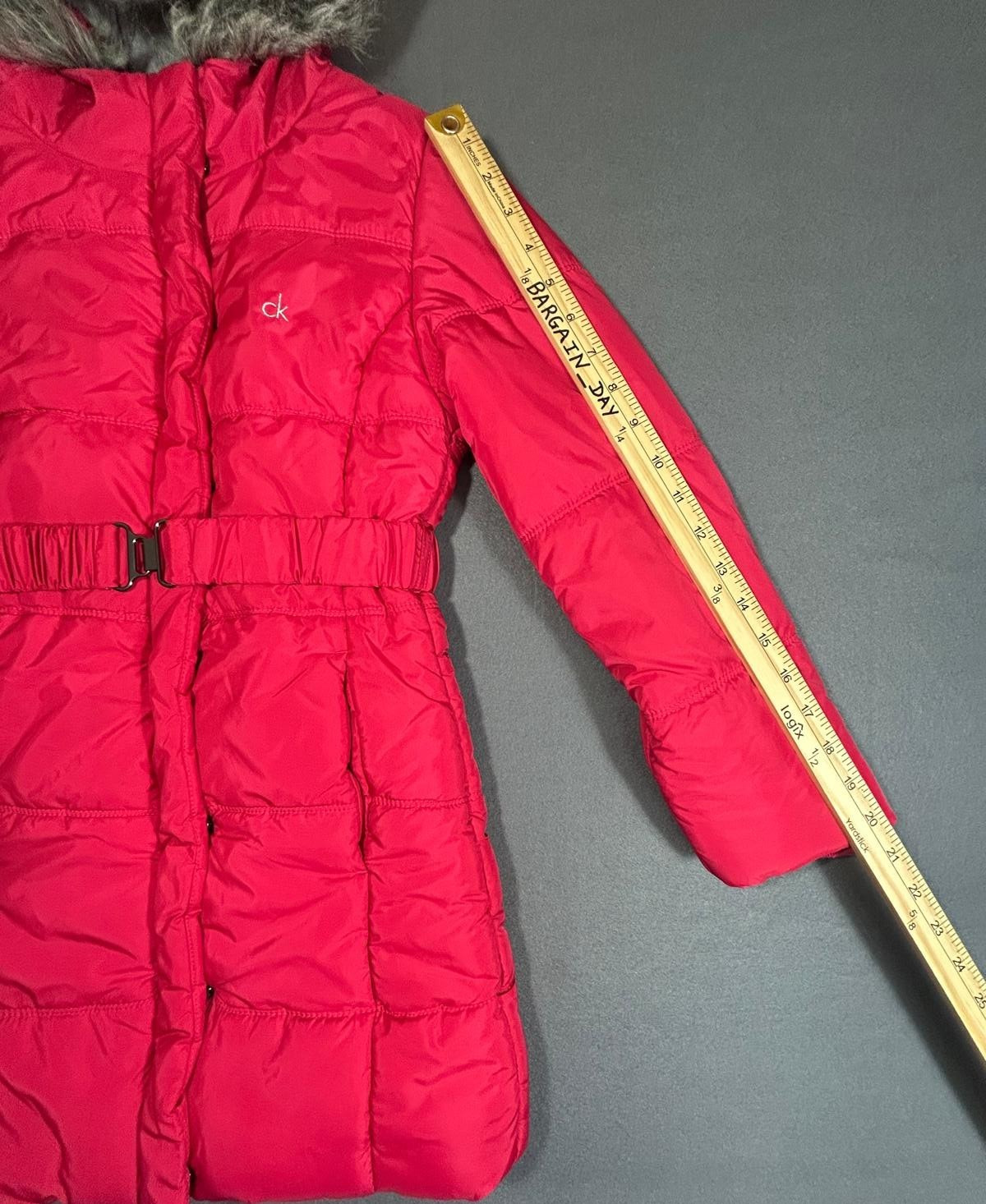 как выглядит Calvin Klein Kids Hooded Puffer Pink Jacket Faux Fur Trim Size M 8-10 фото