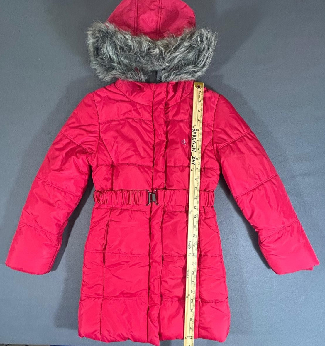Calvin Klein Kids Hooded Puffer Pink Jacket Faux Fur Trim Size M 8-10