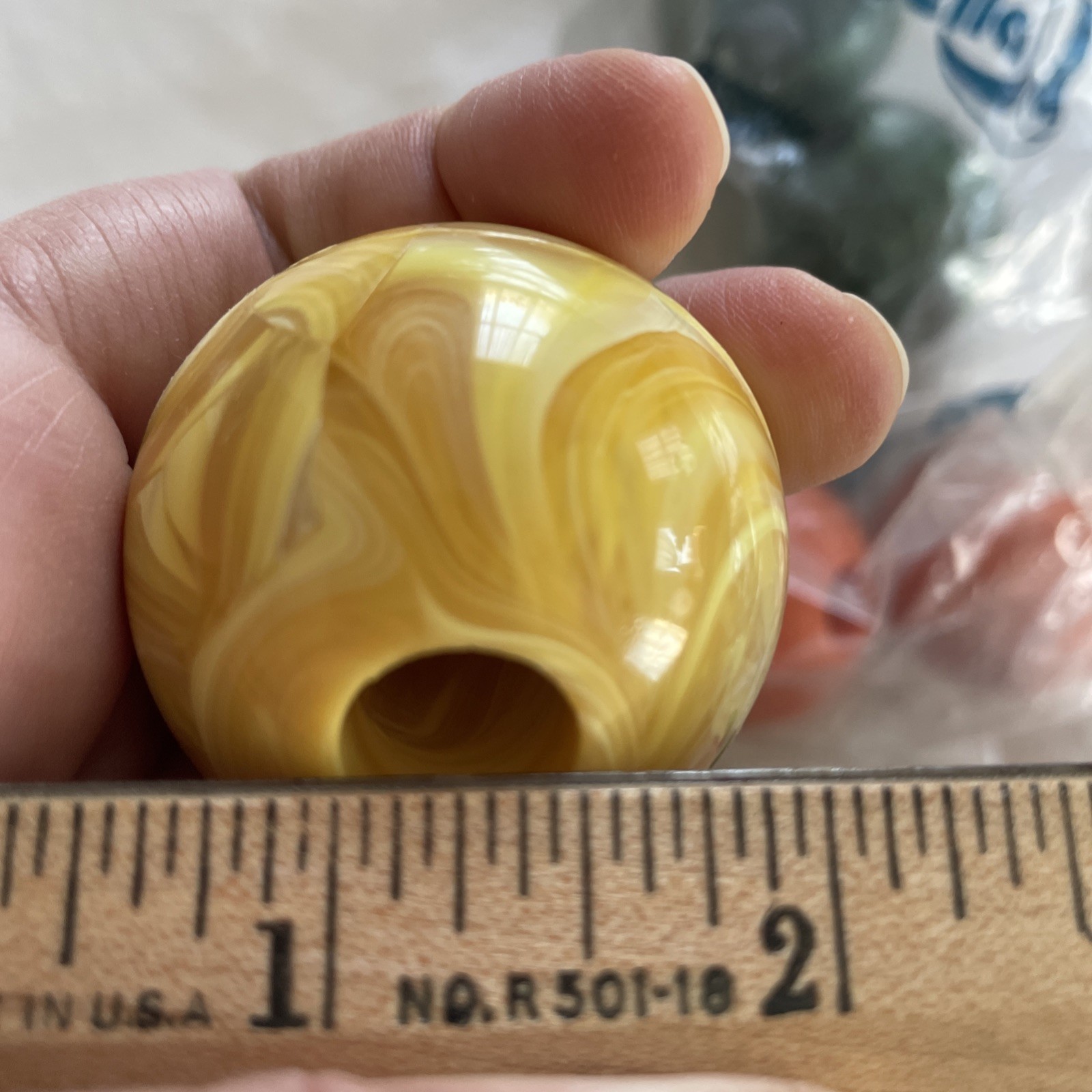 как выглядит VNTG Lot 8 XL Plastic Swirl Macrame Beads NOS Green Orange Yellow 1.75 Round фото