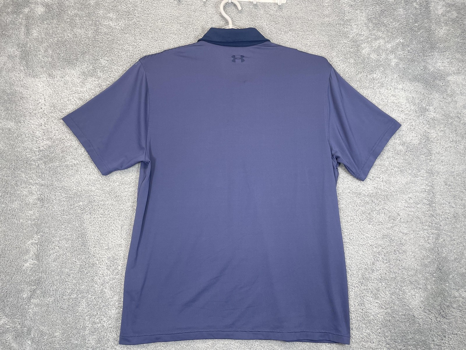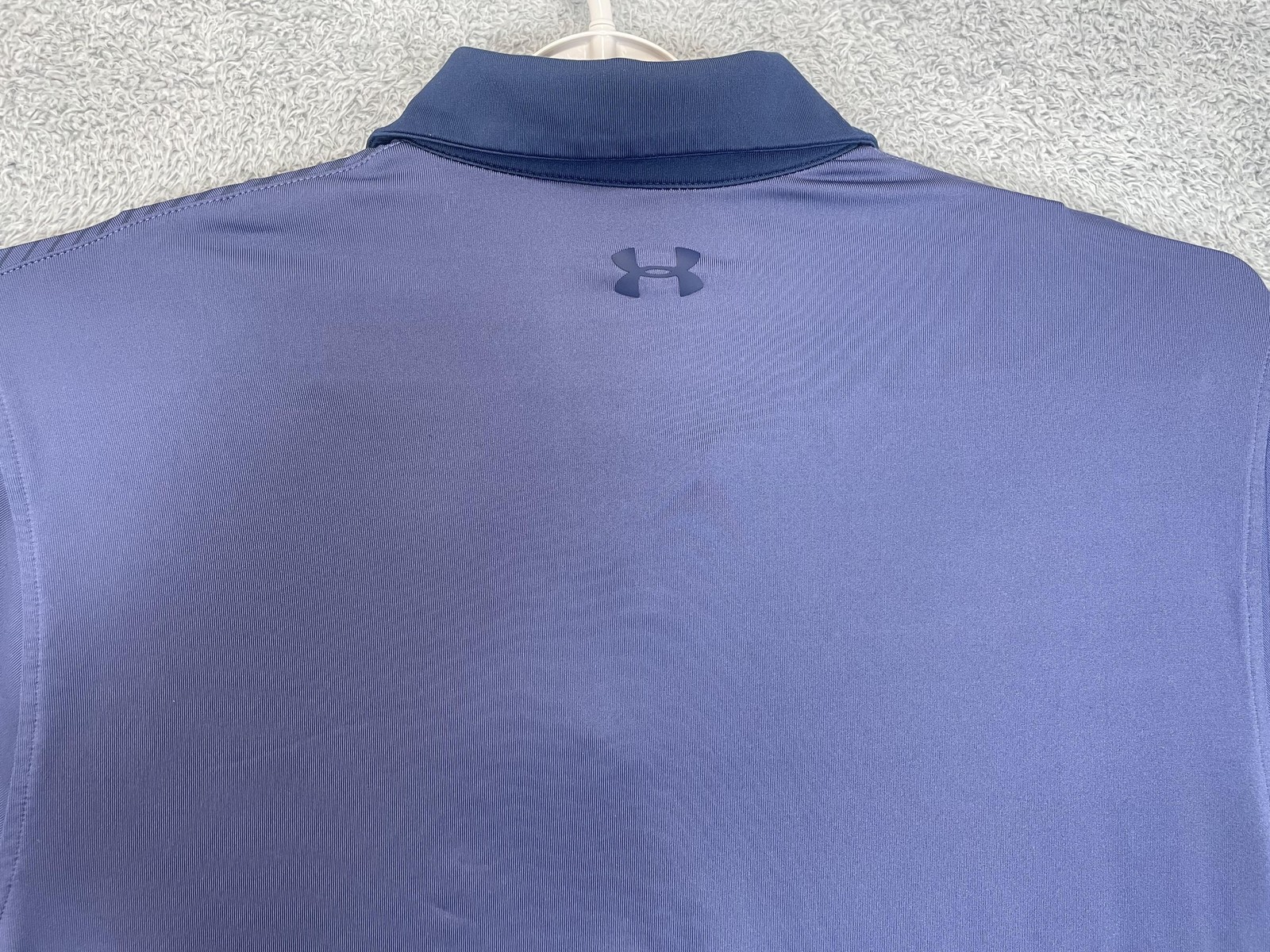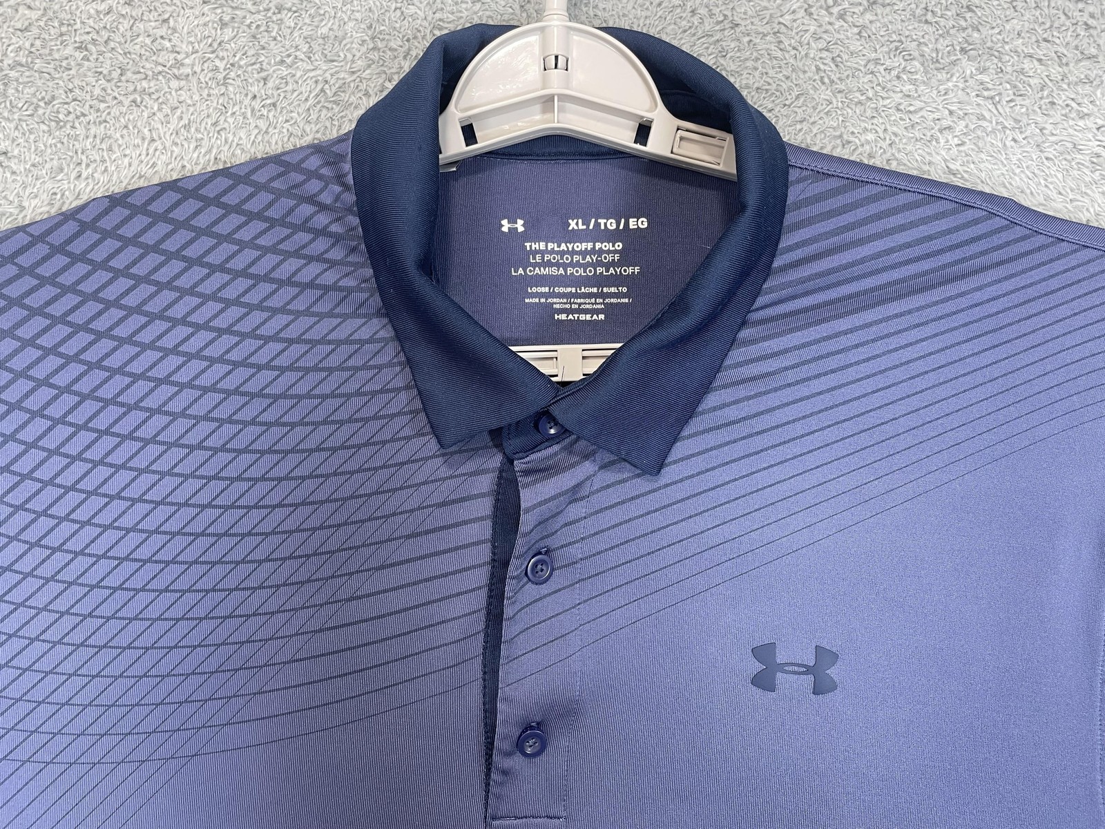 как выглядит Under Armour Playoff Polo Shirt Mens XL Blue Striped HeatGear Golf Performance фото