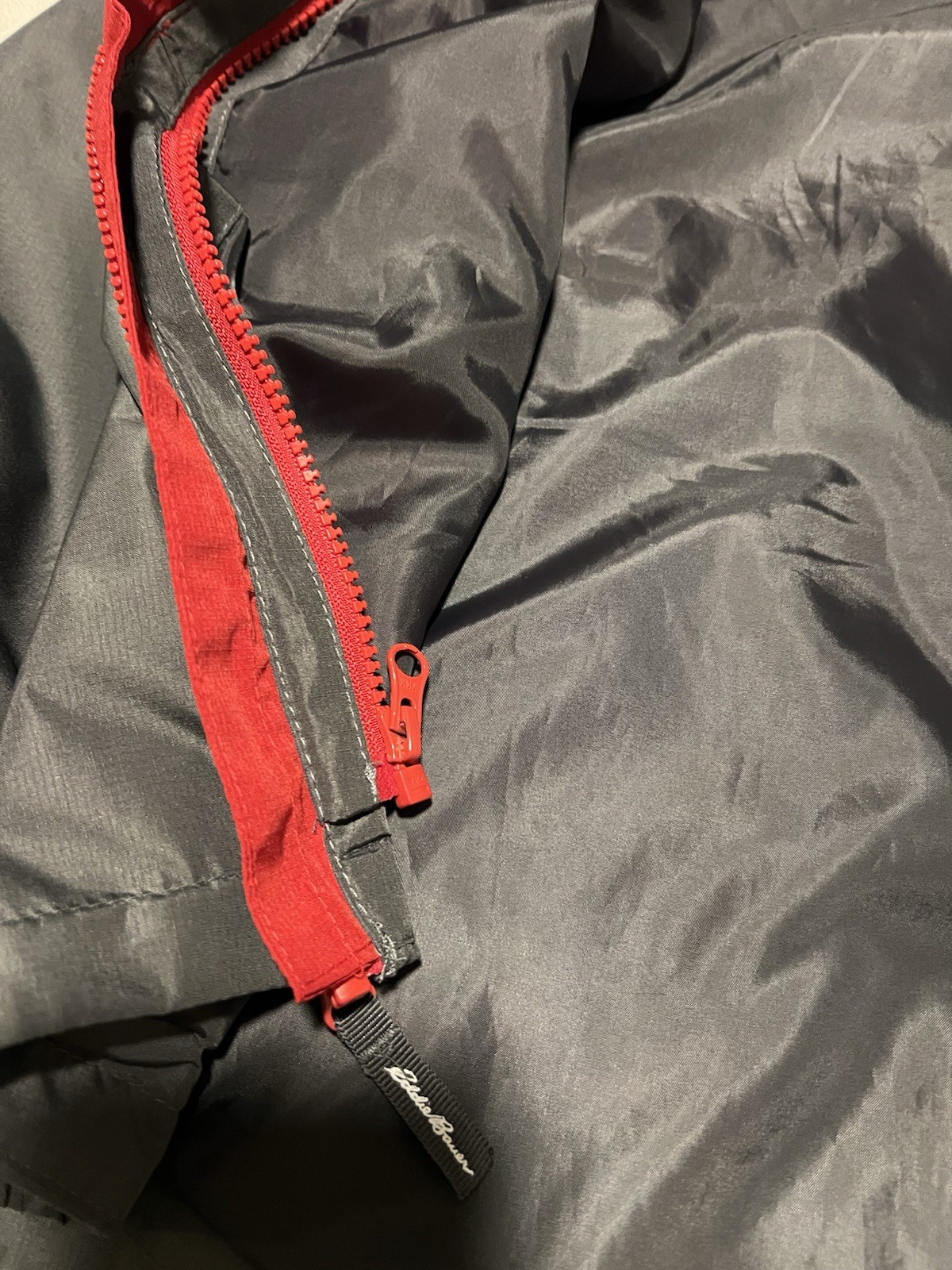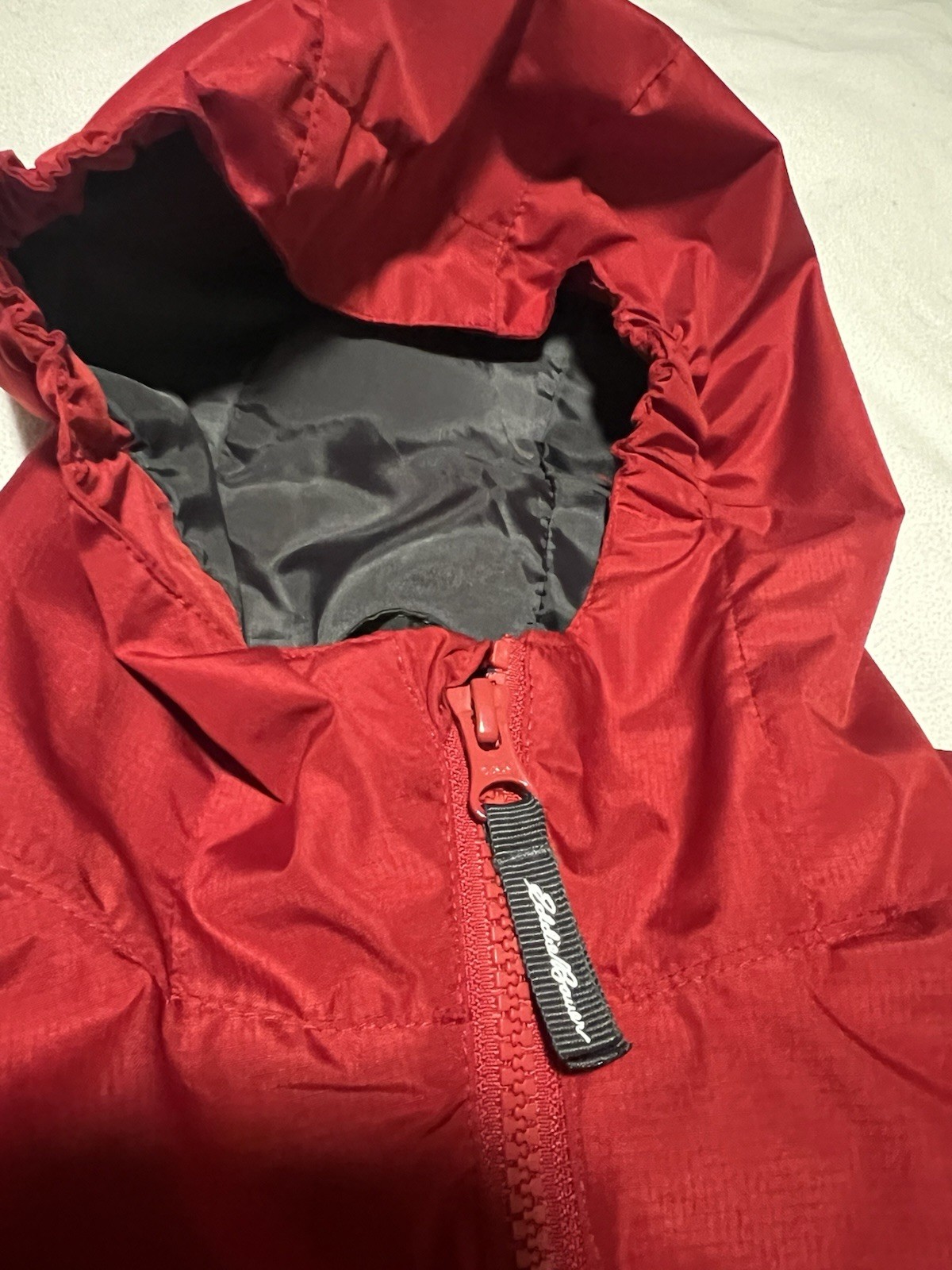 как выглядит Eddie Bauer Jacket Boys Size 7-8 Windbreaker Full Zip Hooded Youth Kids Red Gray фото