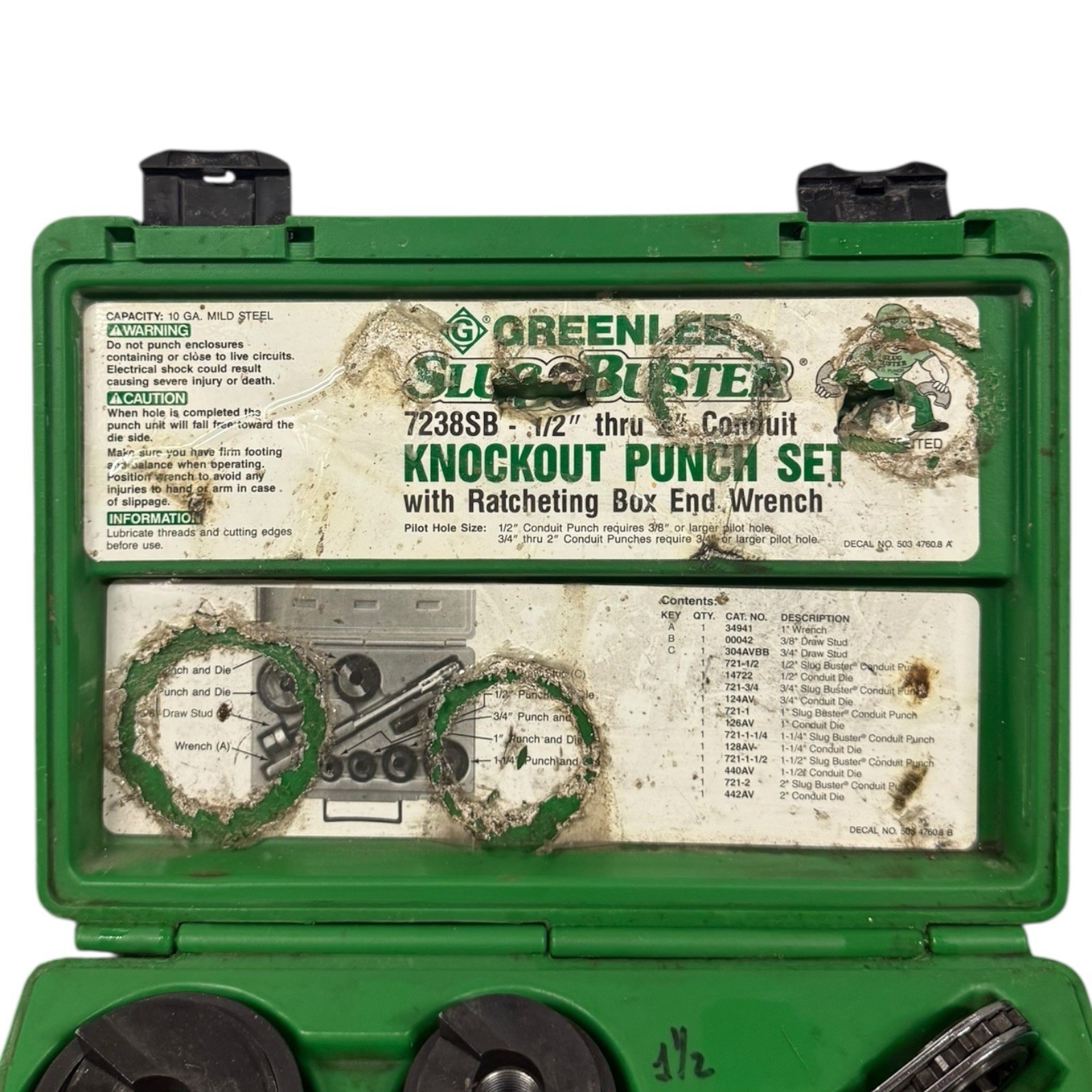 • Greenlee 7238SB Slugbuster Knockout Punch Set 1/2" 2" Complete Used Working