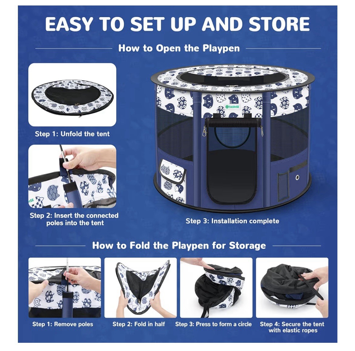 как выглядит TASDISE Portable Pet Playpen, Large, Foldable, Durable Kennel, Cat, Dog, Bunny фото