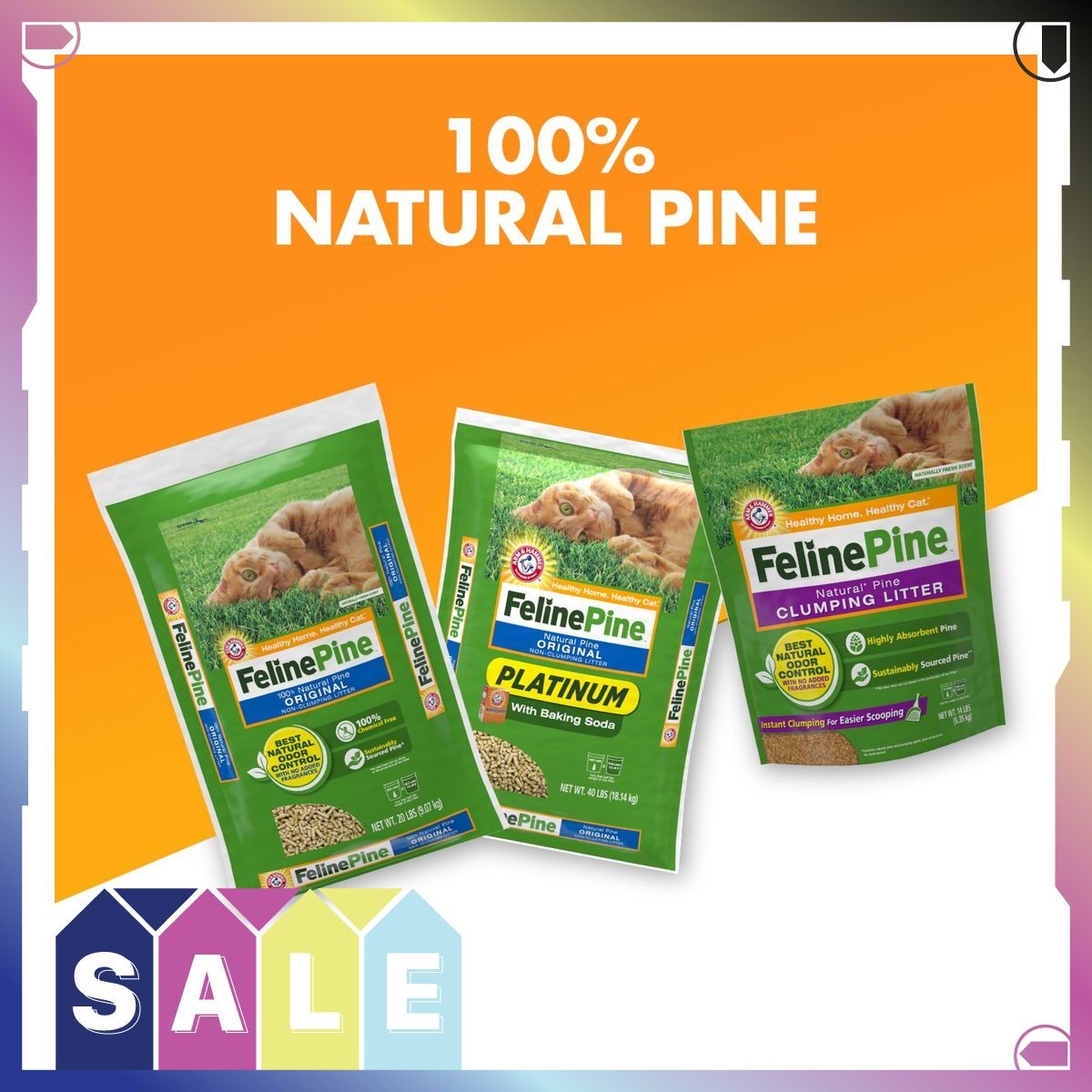 4 pack Feline Pine Original 100 Natural Cat Litter, 20 lb