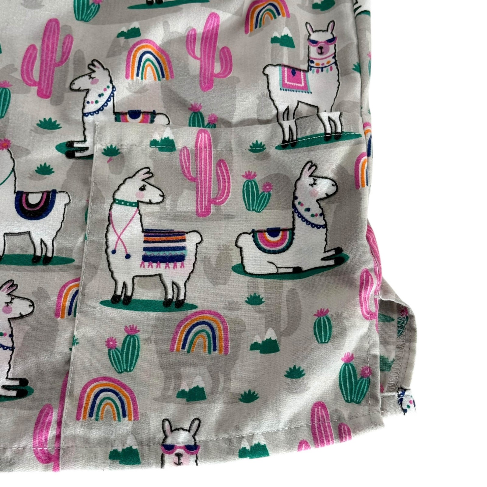 I Love Scrubs Scrub Top Medium Llamas Cactus Rainbows Gray Pink Green