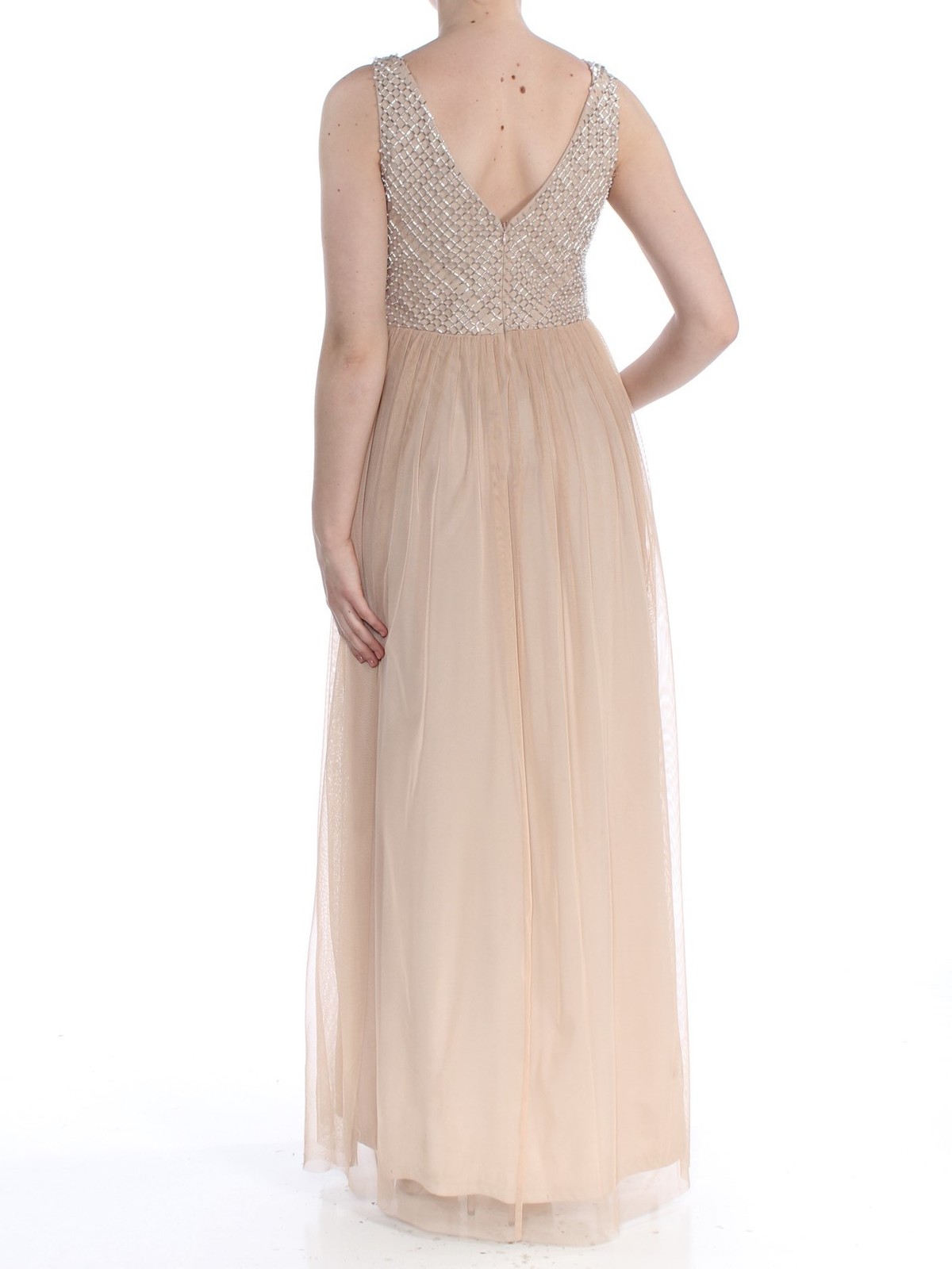 как выглядит ADRIANNA PAPELL Womens Beige Bodice V Neck Full-Length Evening Dress 8 фото