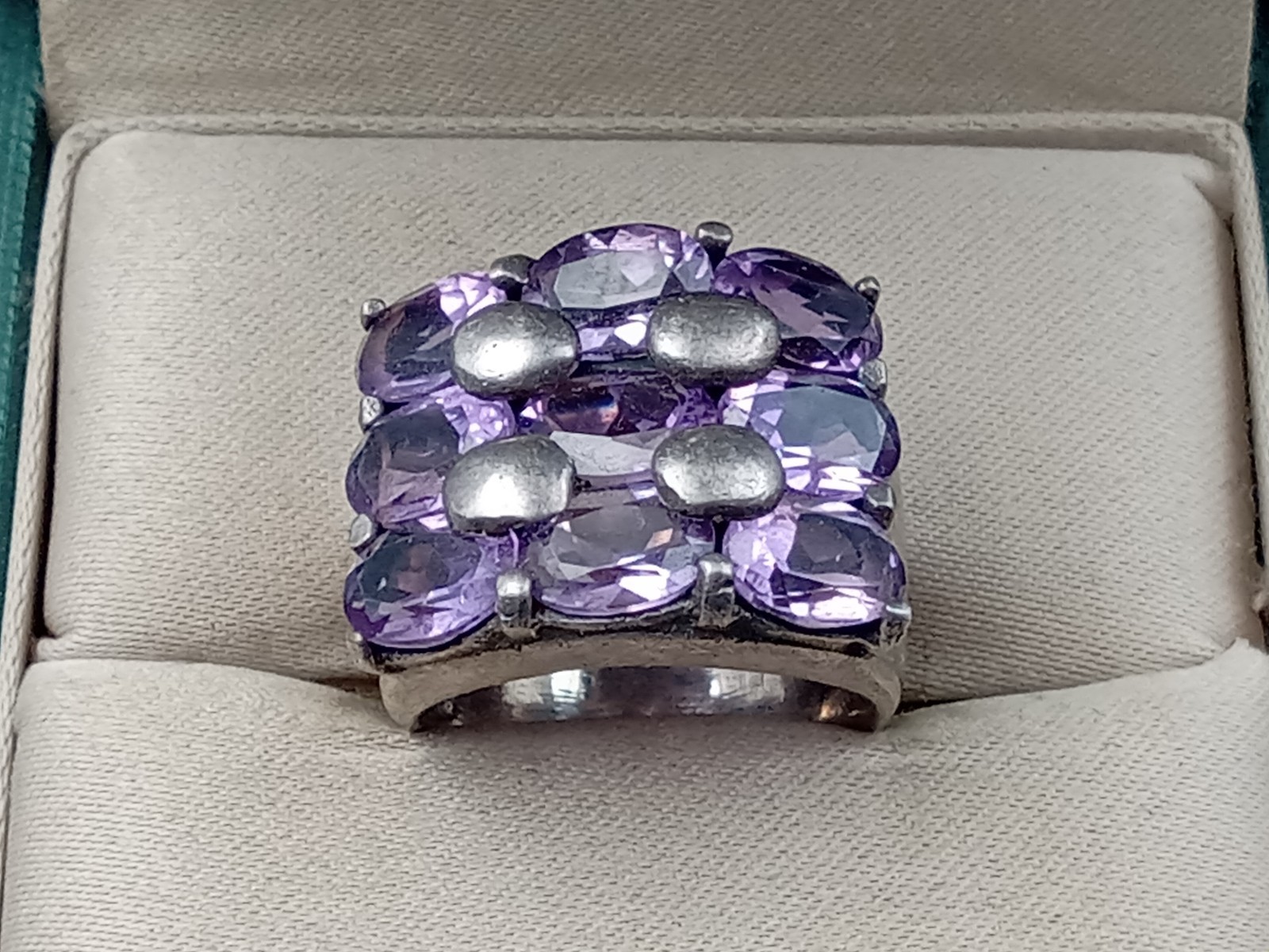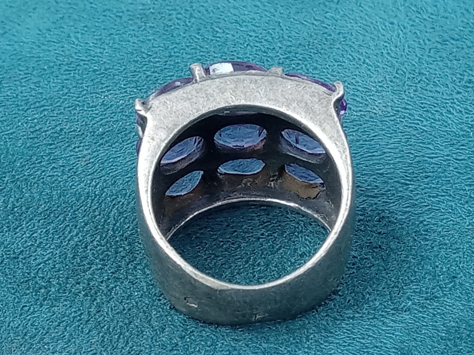 как выглядит Sterling Silver Ring w. 9 Amethyst Ovals in Prong Settings: Very Solid Look фото