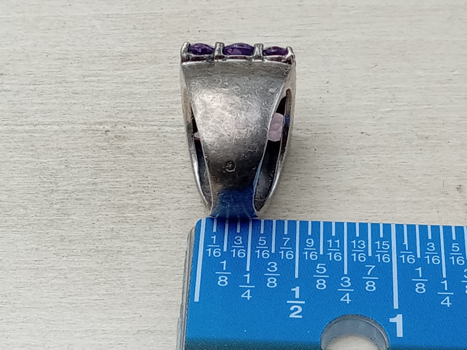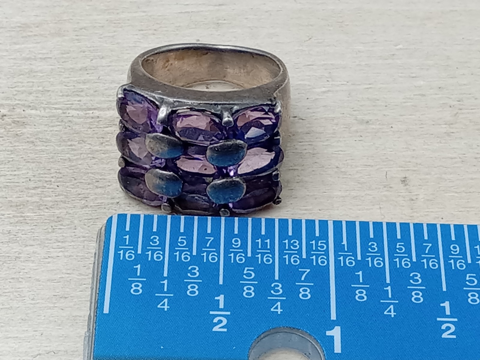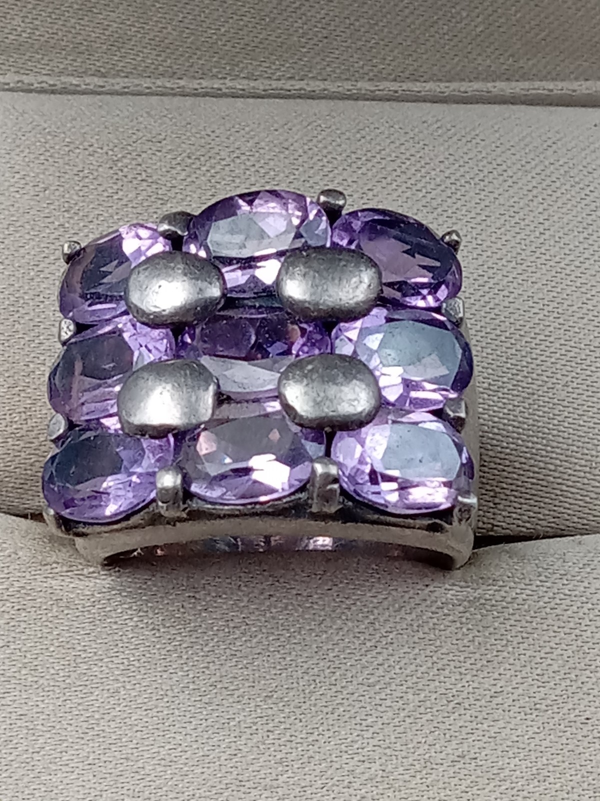 Sterling Silver Ring w. 9 Amethyst Ovals in Prong Settings: Very Solid Look