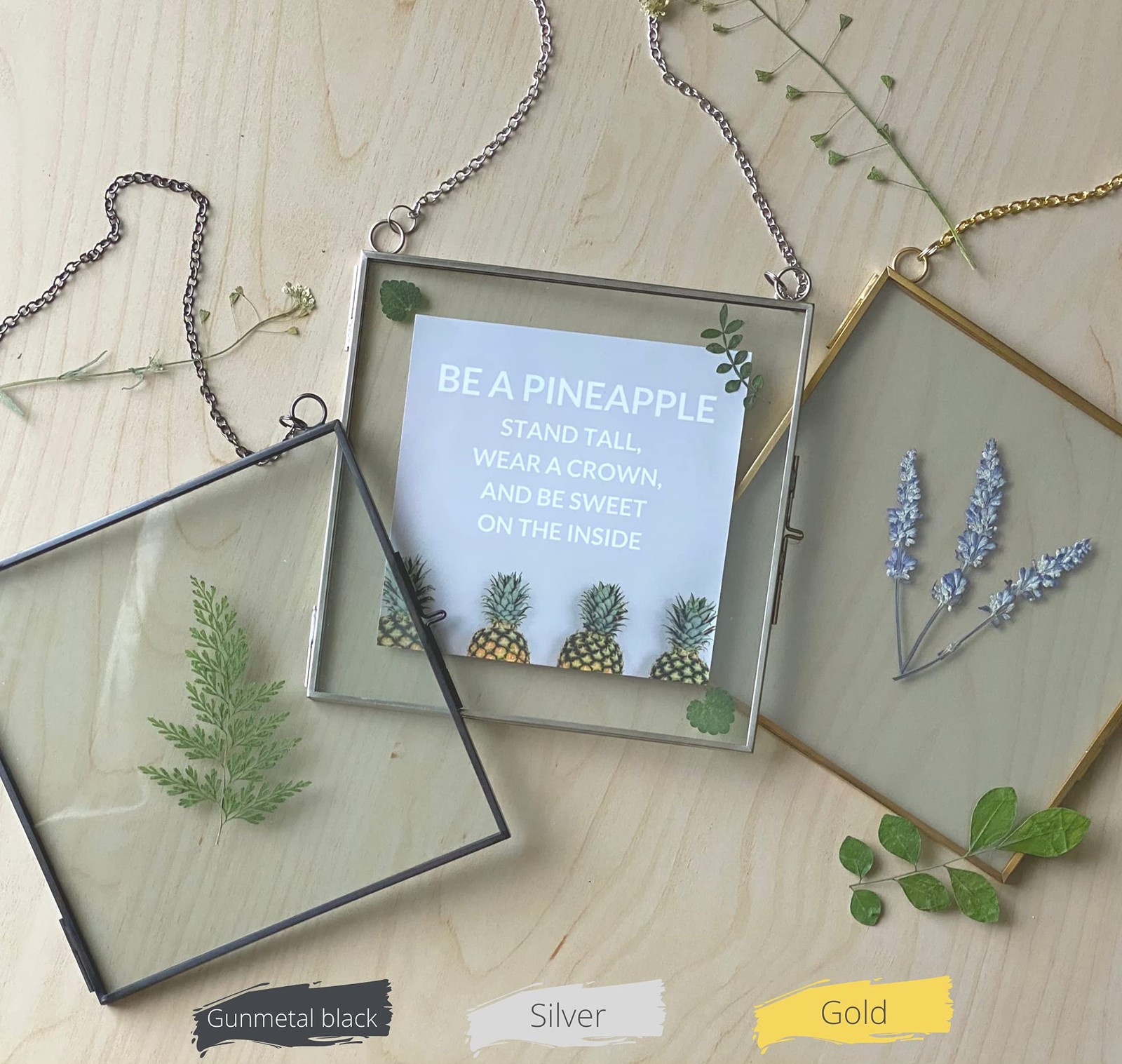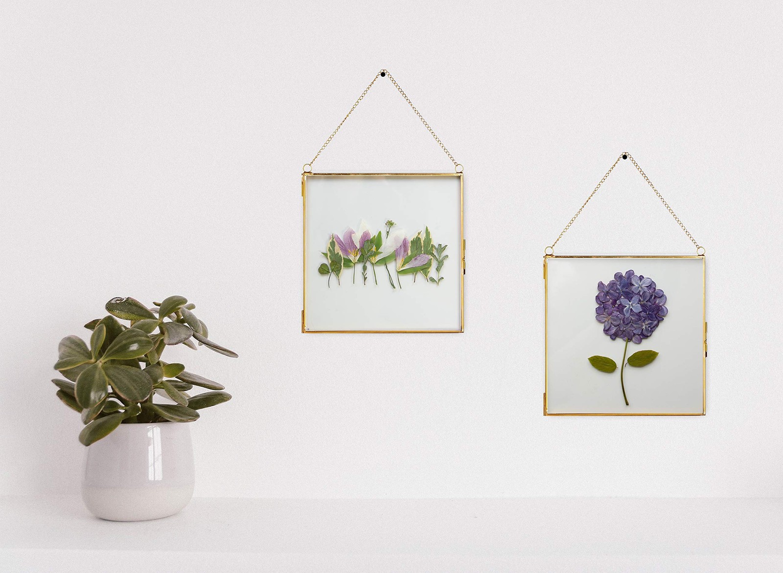 Glass Frame for Pressed Flowers, Leaf and Artwork - Hanging Gold 6x6 Square M...