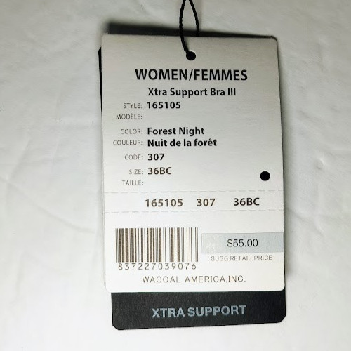 CW-X Women's Xtra Support High Impact Black Sports Bra 165105 Forrest 36 B/C NWT