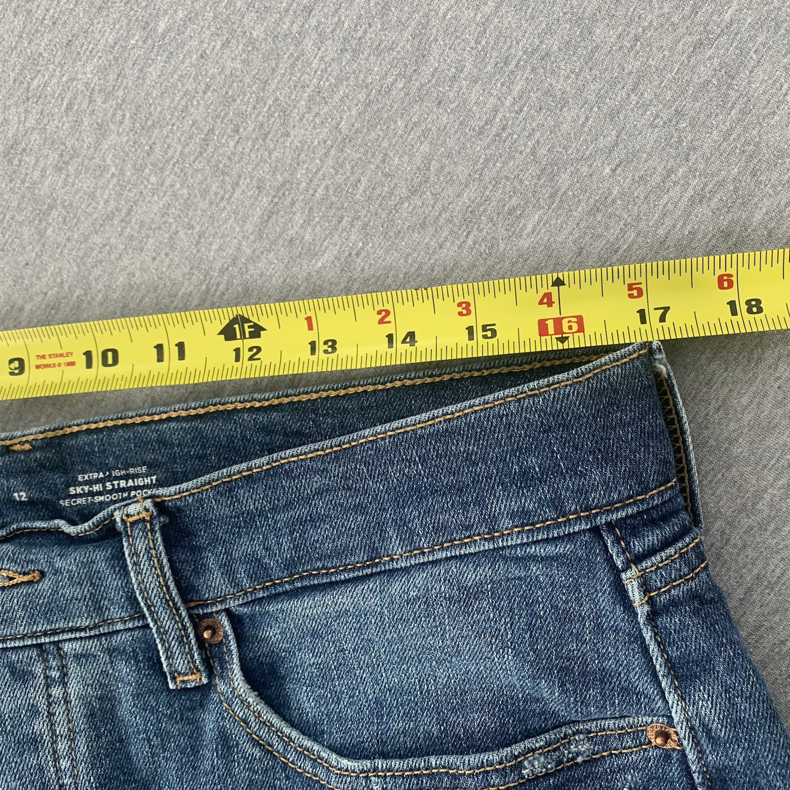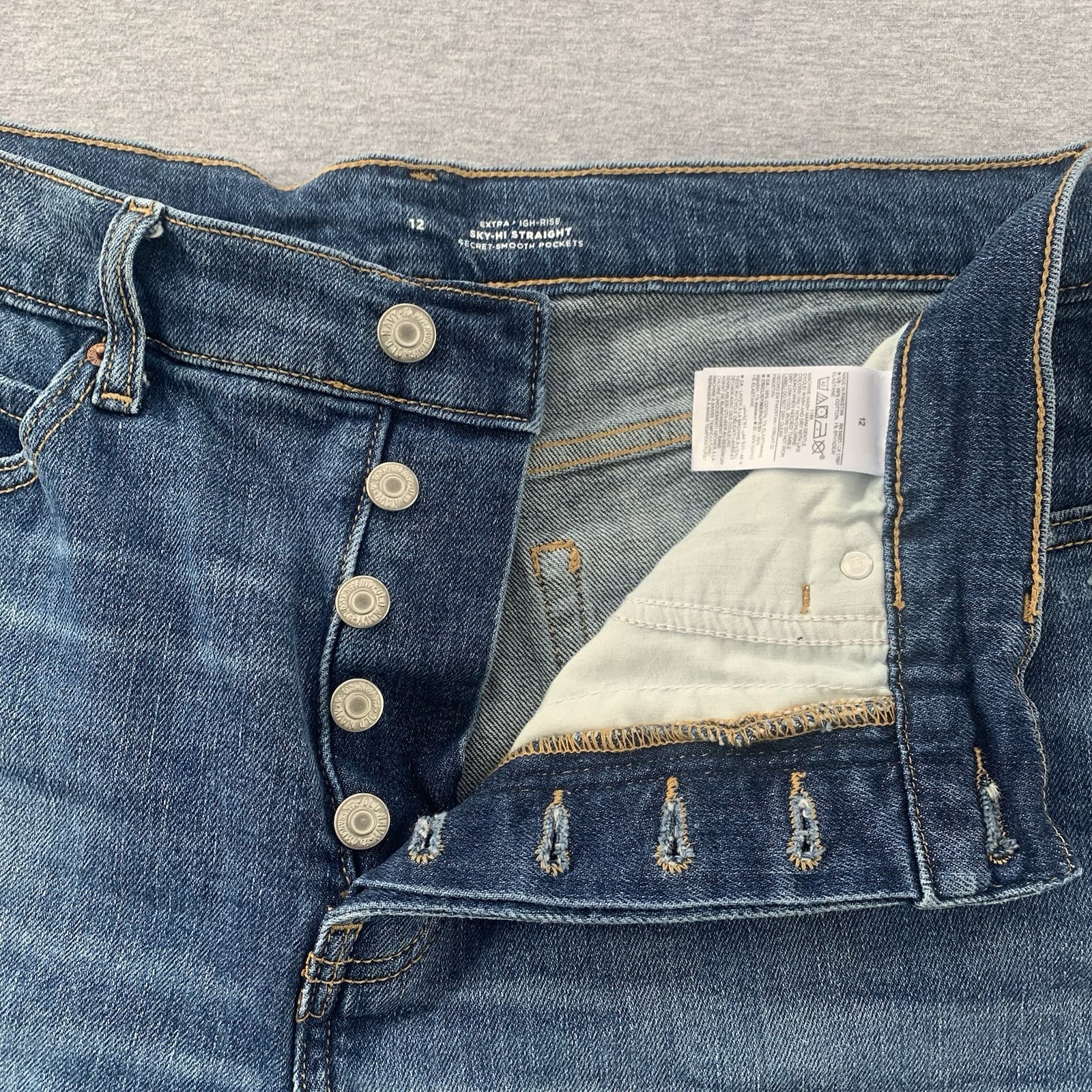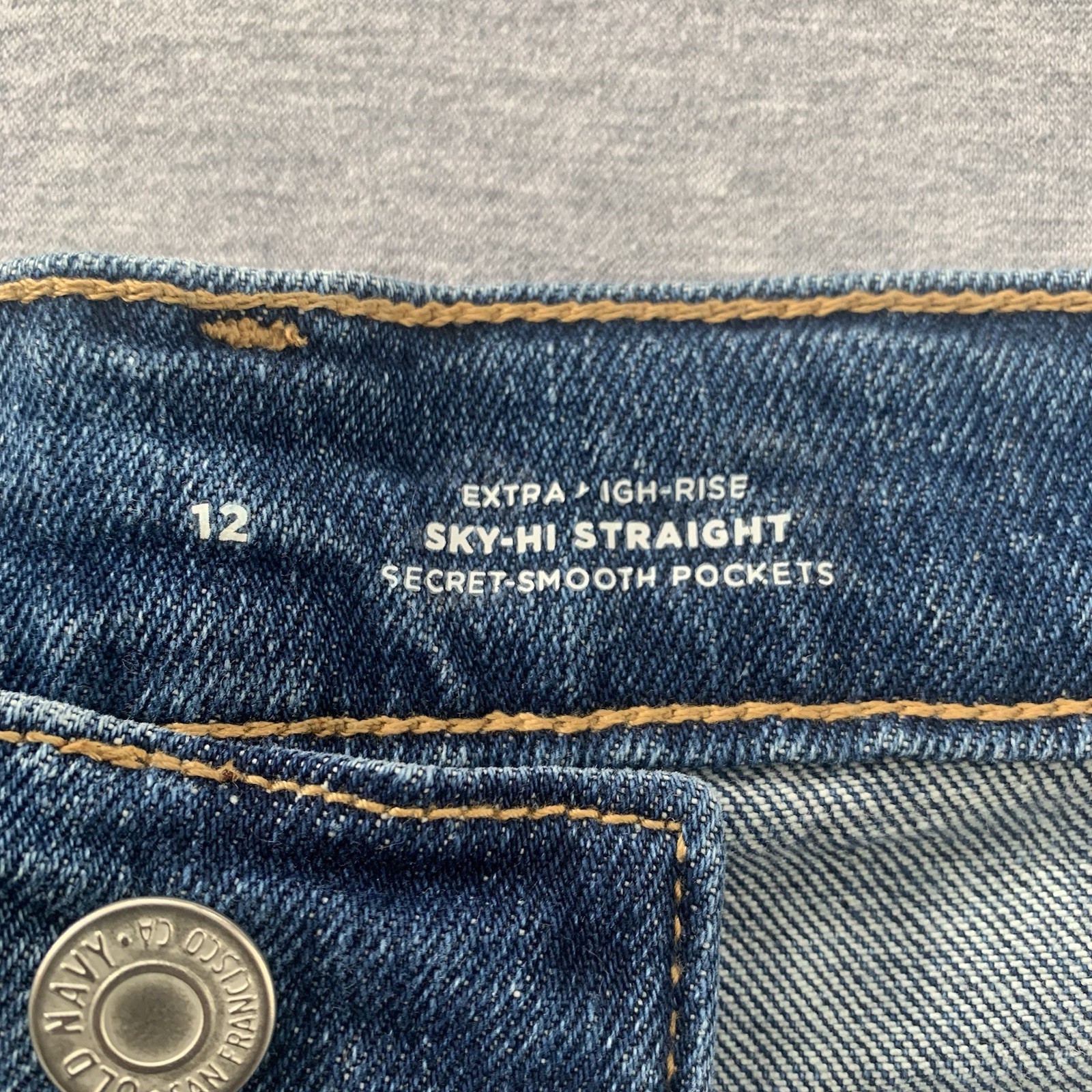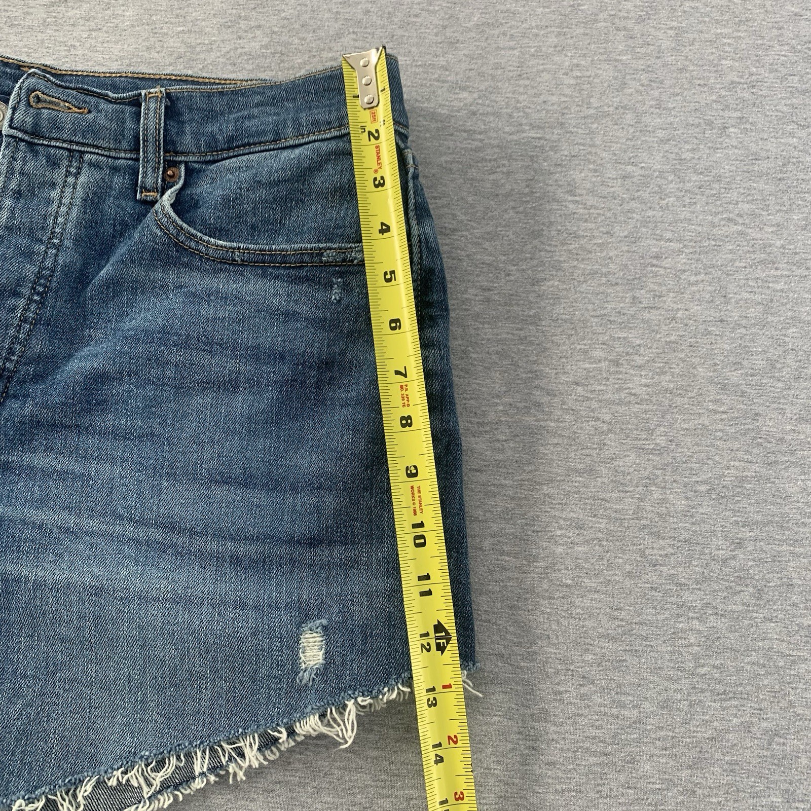 Old Navy Sky-Hi Straight Jean Shorts Women s 12 Distressed Extra High Rise