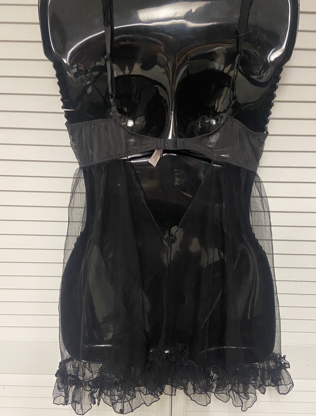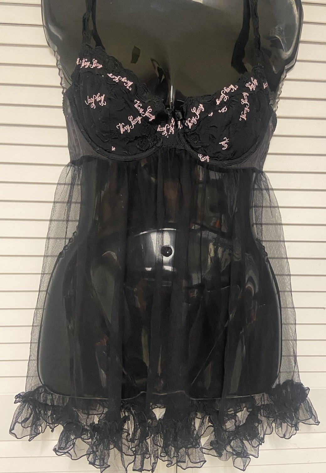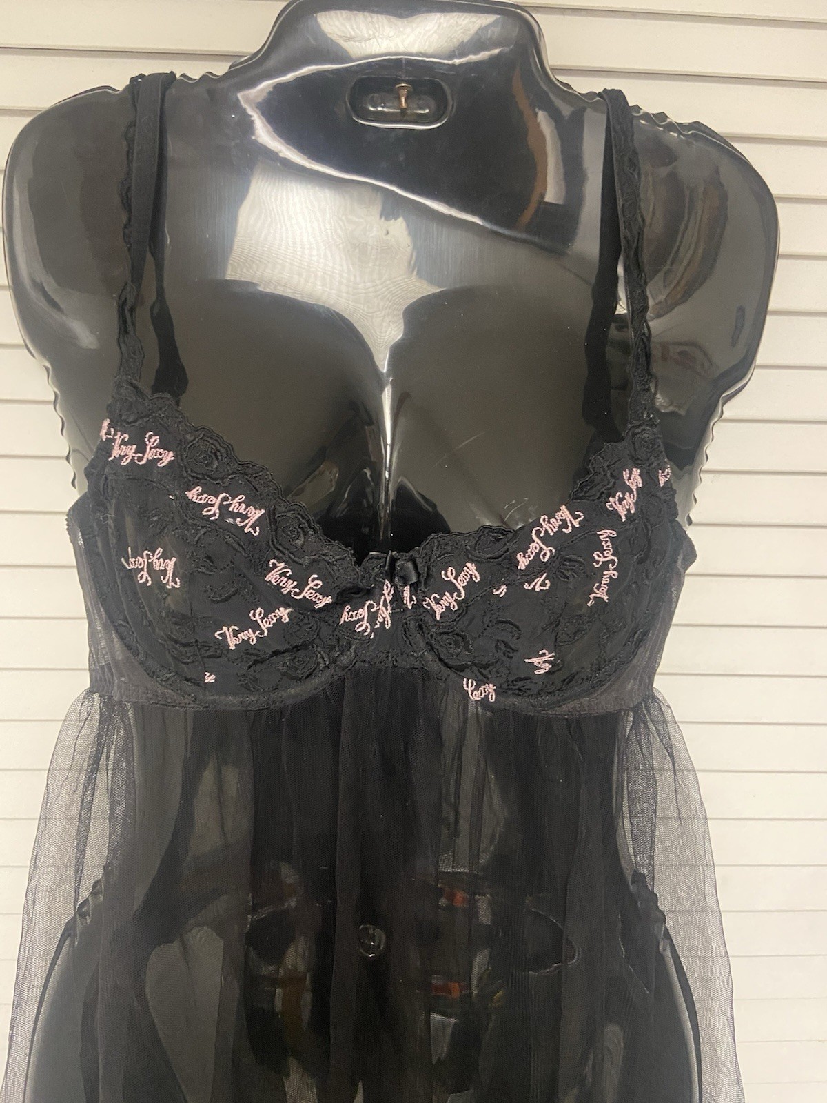 Y2k Victoria s Secret Vintage Babydoll Nightgown Black Mesh Pink Logo 36C