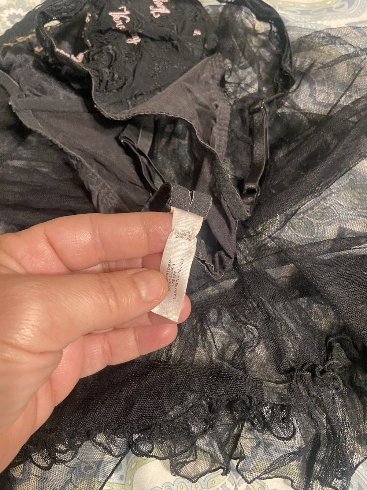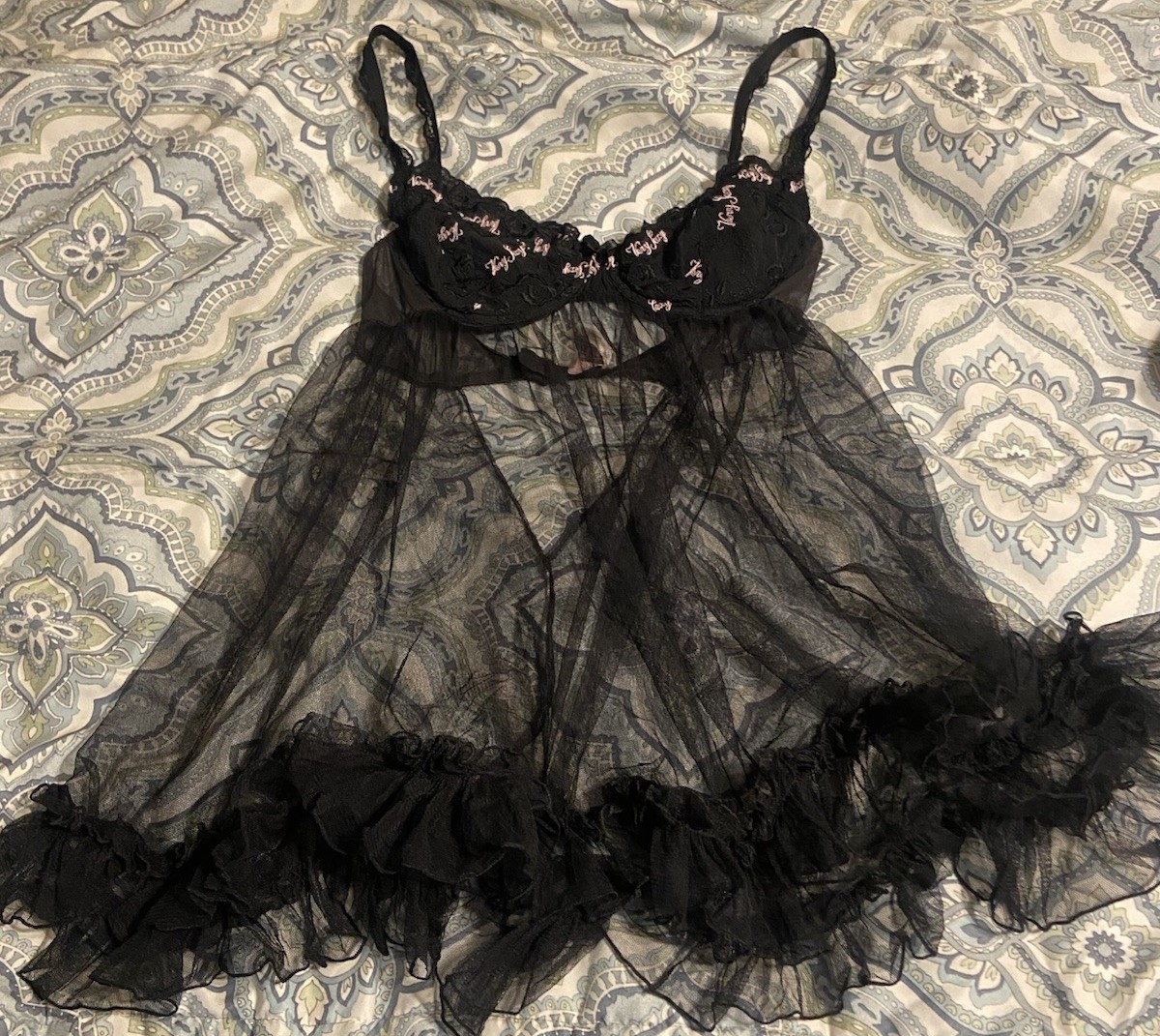 как выглядит Y2k Victoria s Secret Vintage Babydoll Nightgown Black Mesh Pink Logo 36C фото