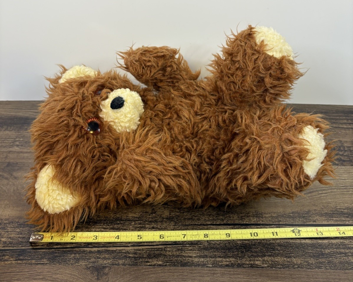 Vintage Teddy Bear 12 Stuffed Brown Plush Furry Hard Eyes
