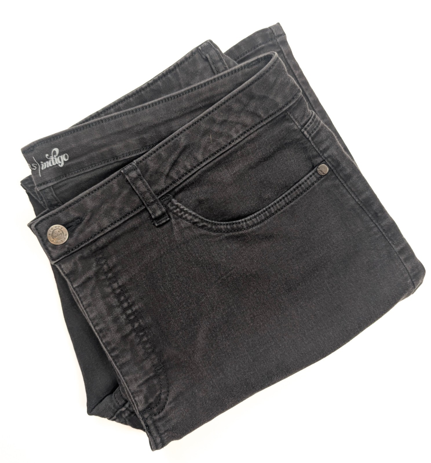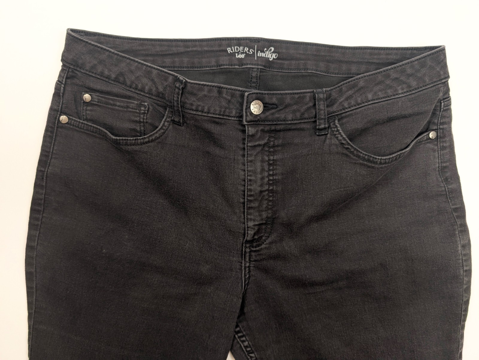 как выглядит Lee Riders Indigo Stretch Black Denim Wash Tapered Leg Jeans Women