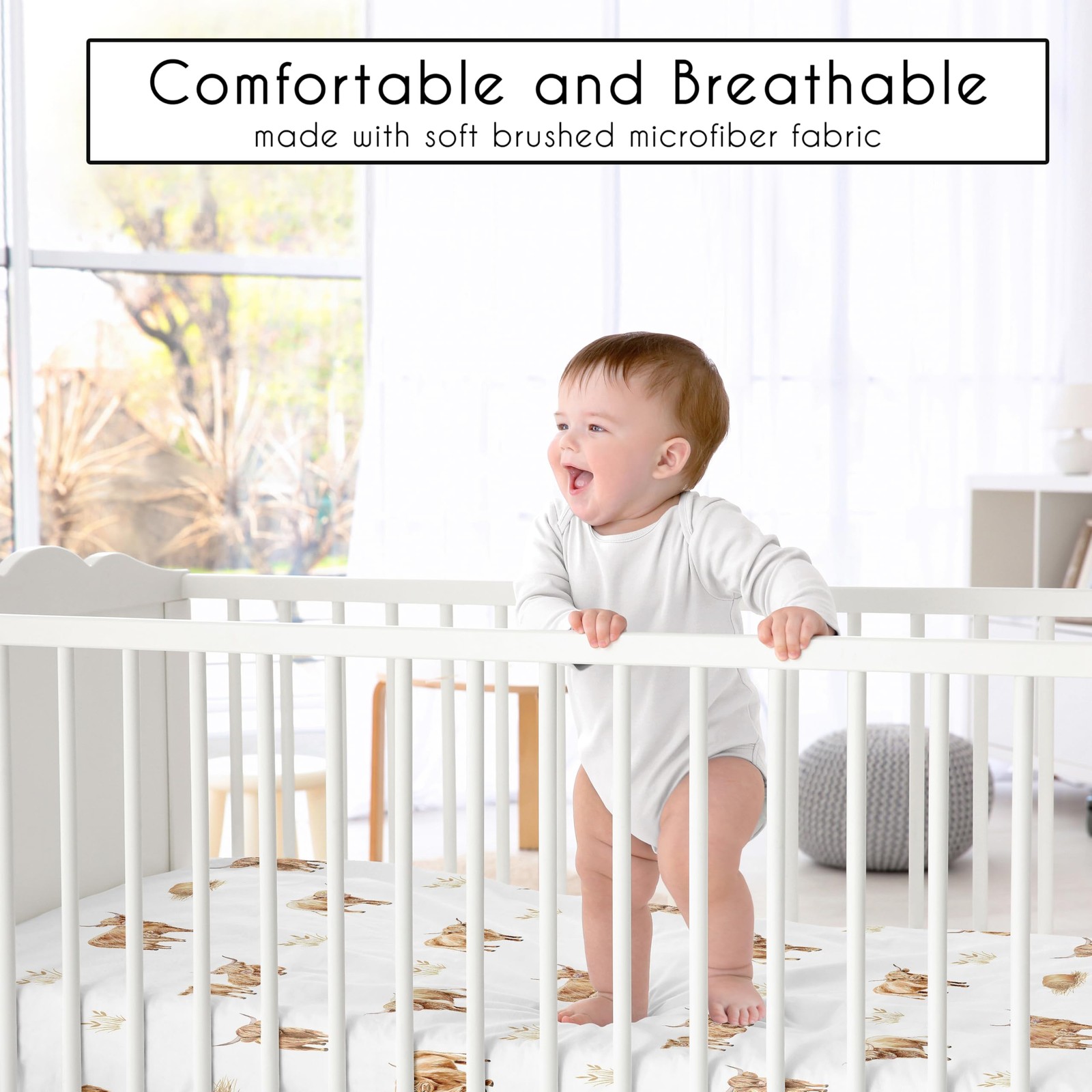 Sweet Jojo Designs Boho Highland Cow Fitted Crib Sheet - Baby Boy/Girl