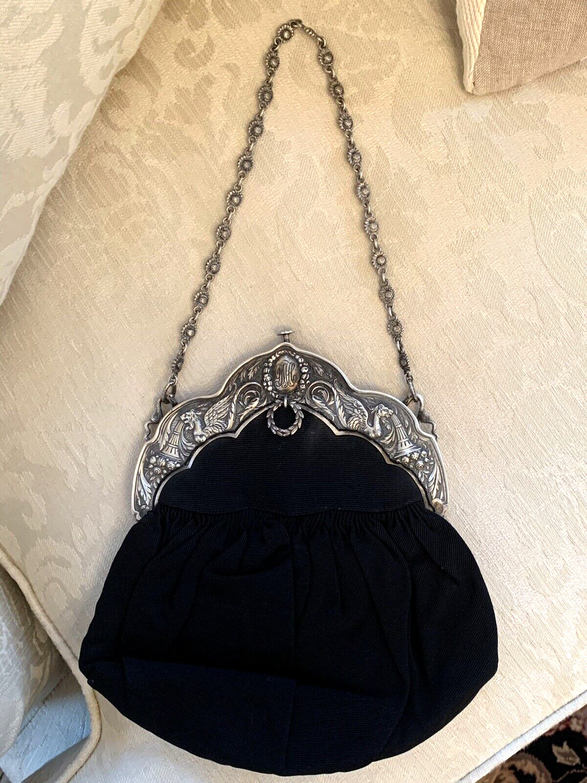Rare Art Nouveau Sterling Silver Chatelaine Fantasy Serpent Purse Signed 1890's