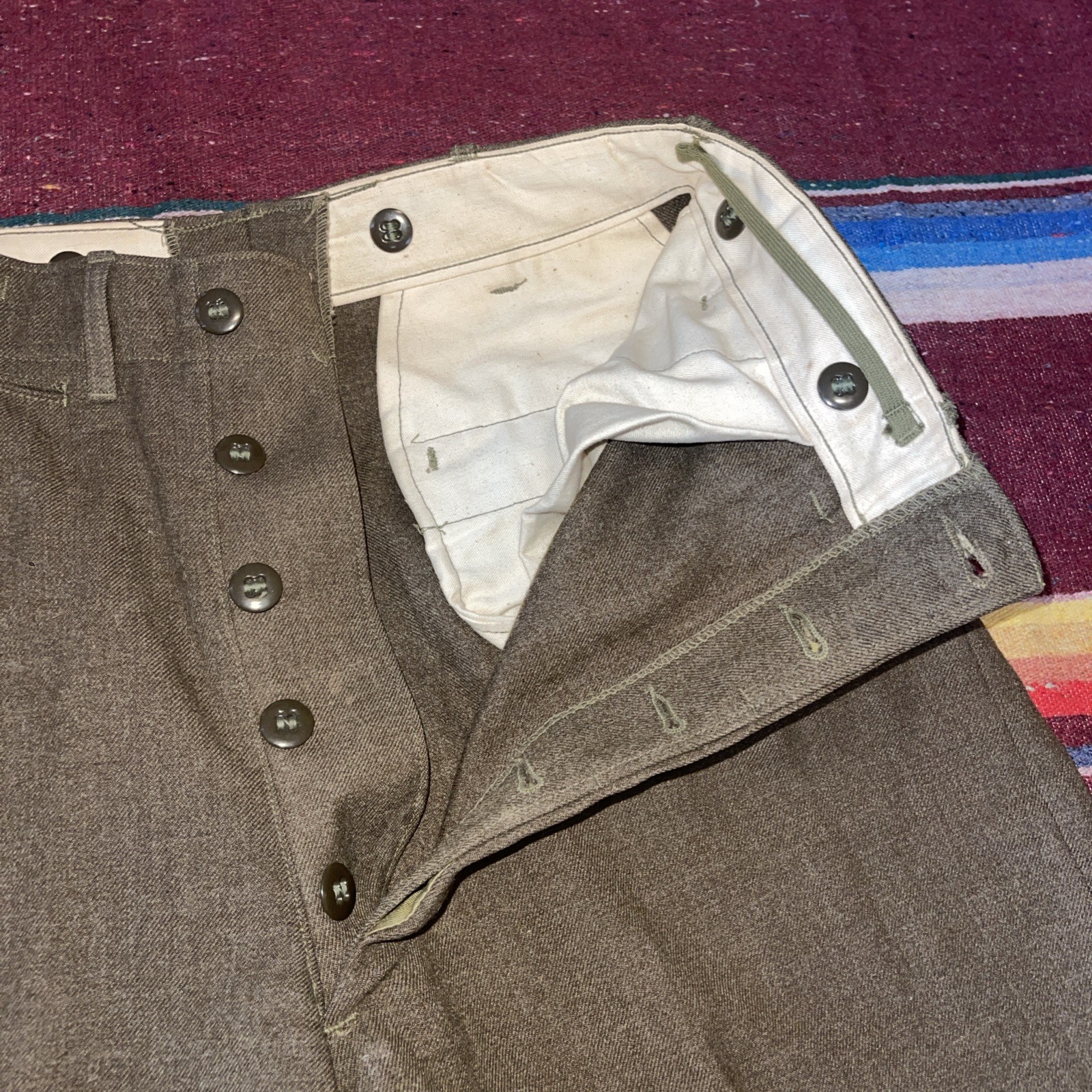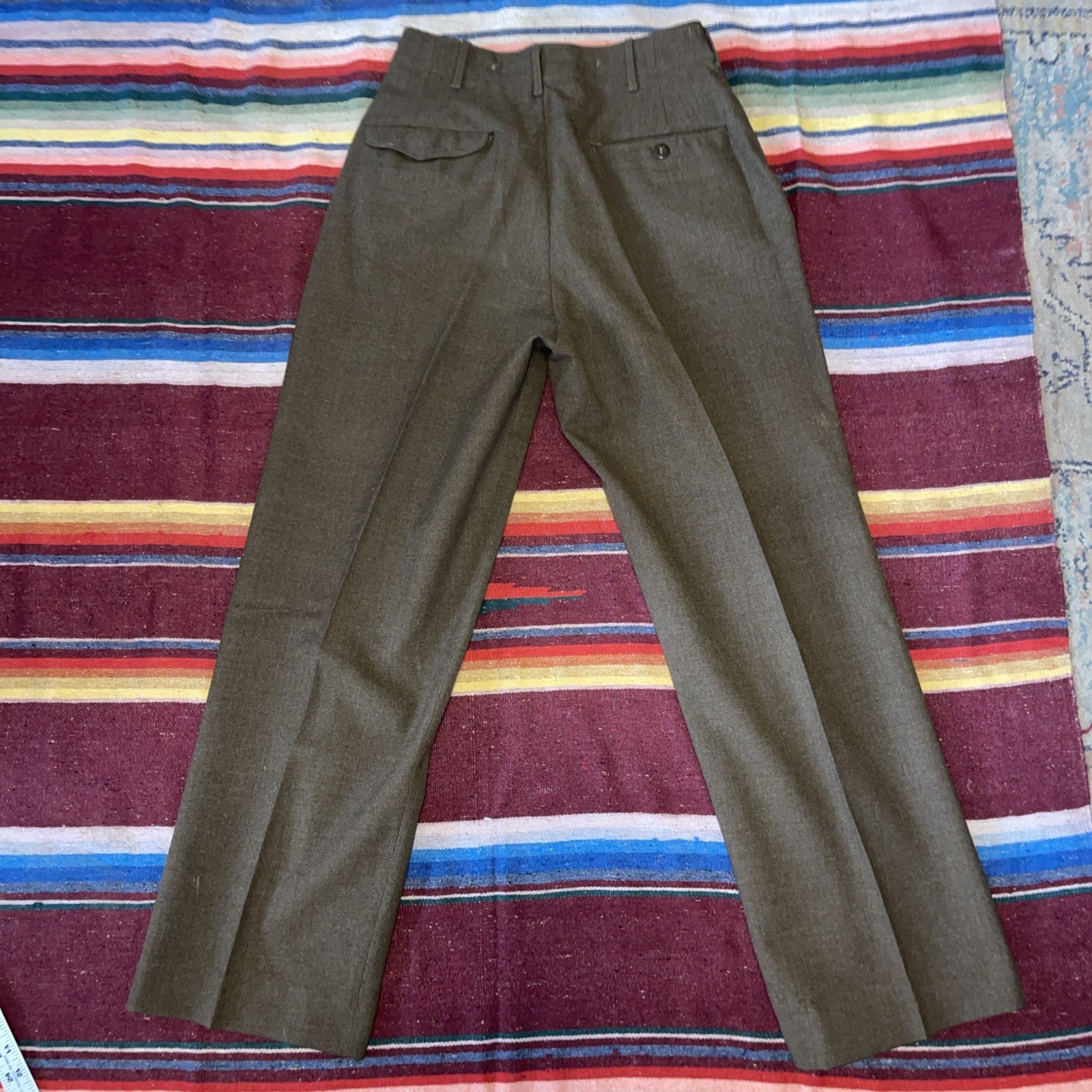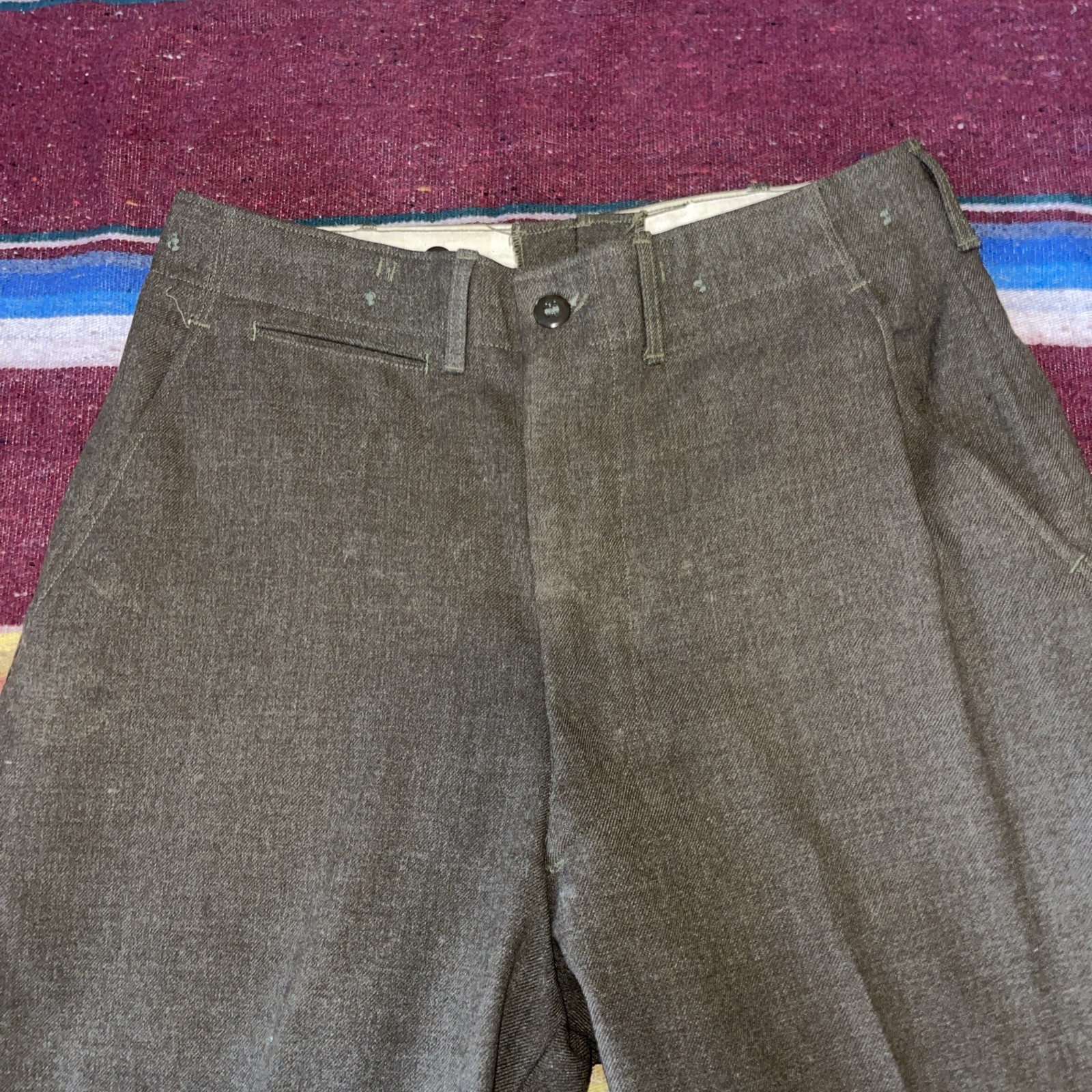 как выглядит Vintage Wool Green Military 31x31 Button Fly Pants WWII Era Pristine Condition фото