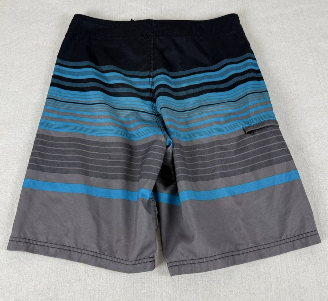 Hurley Mens 32 Black Blue Gray Stripe 10 Board Shorts Beach Surf