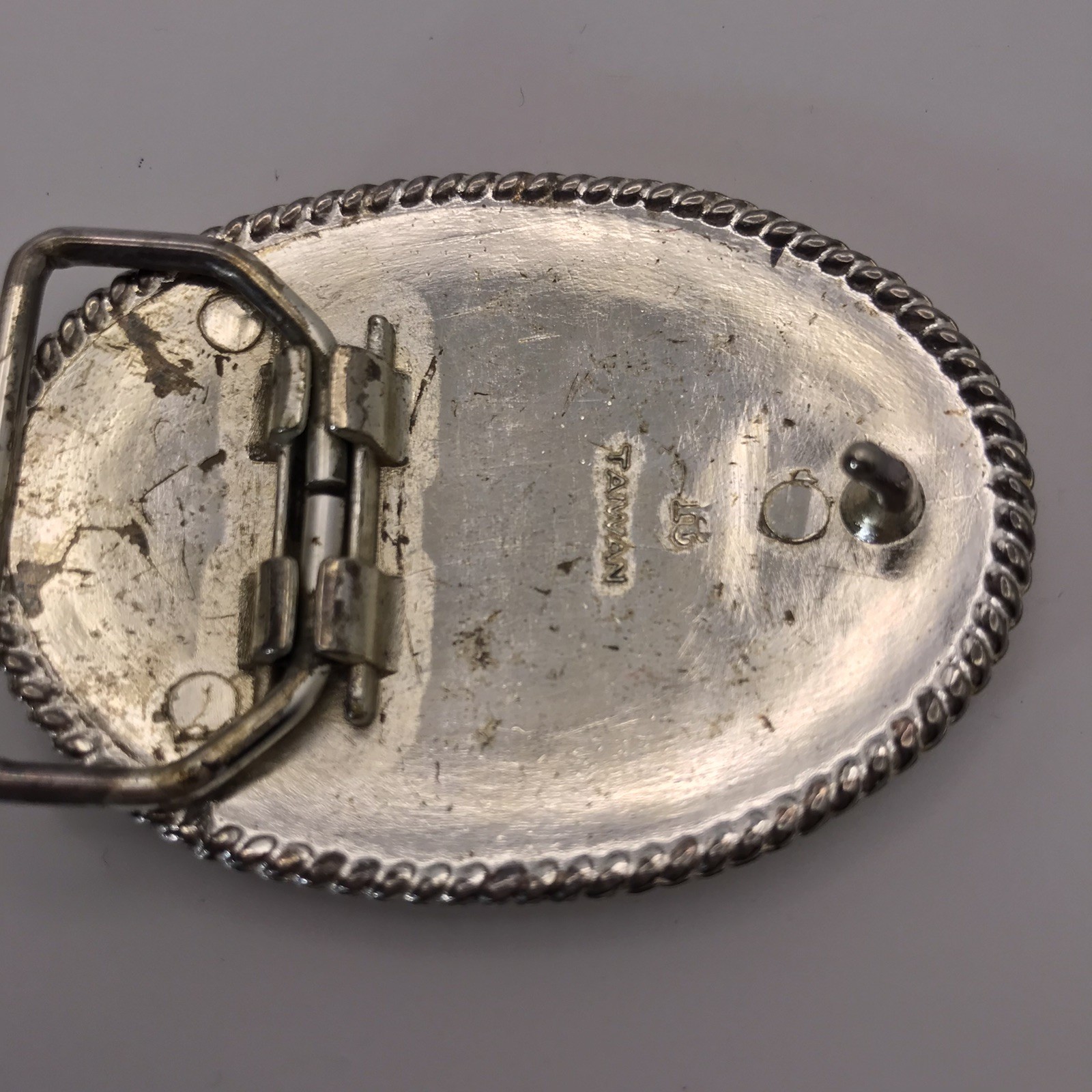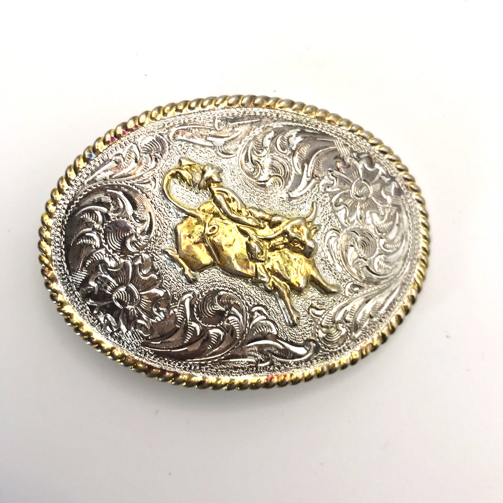 Vtg Belt Buckle Cowboy Rodeo Bull Rider Two Tone Ornate Western Small Taiwan