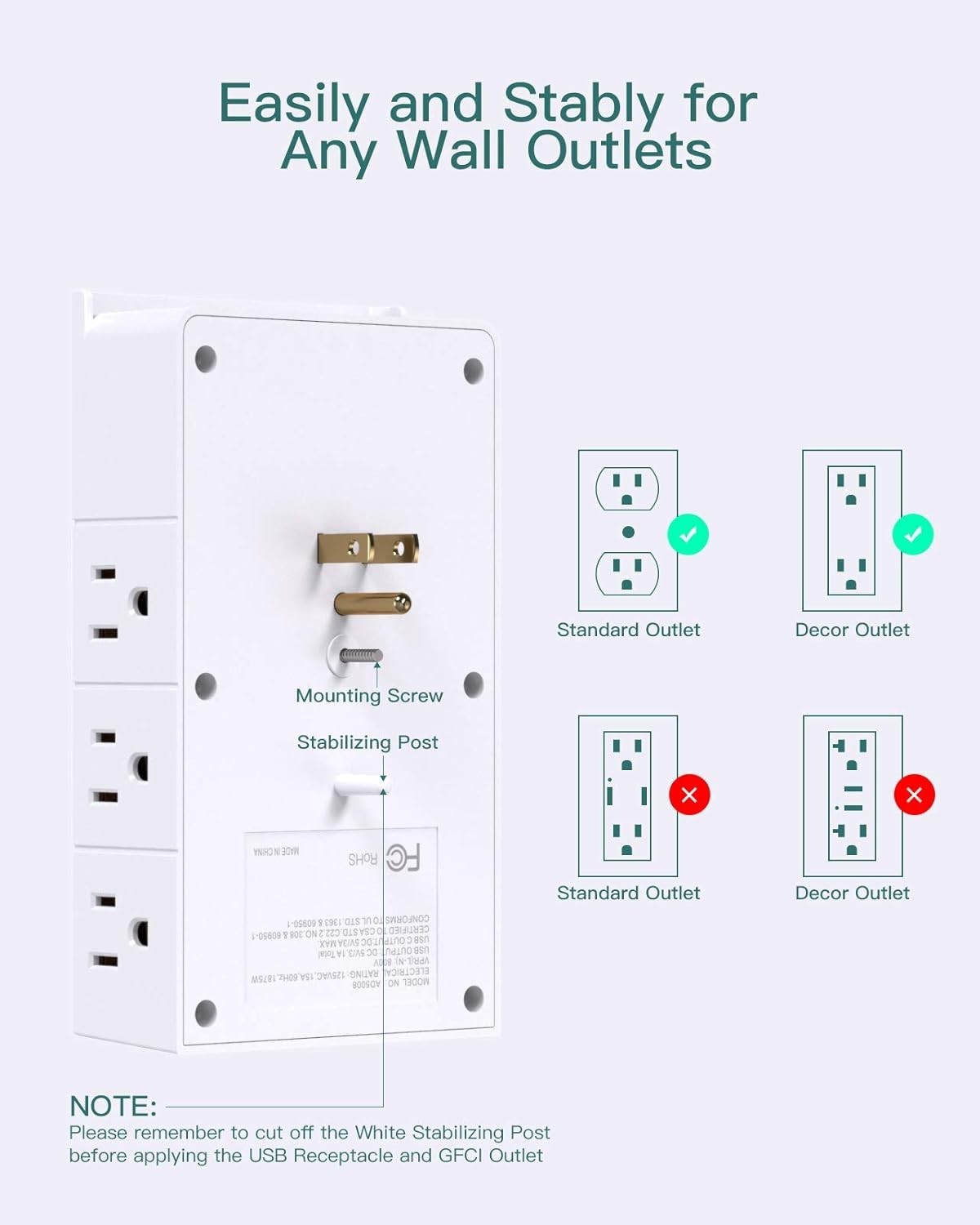 Multi Plug Outlet - Surge Protector Wall Mount with 12 Outlet Extender- 3 Sid...