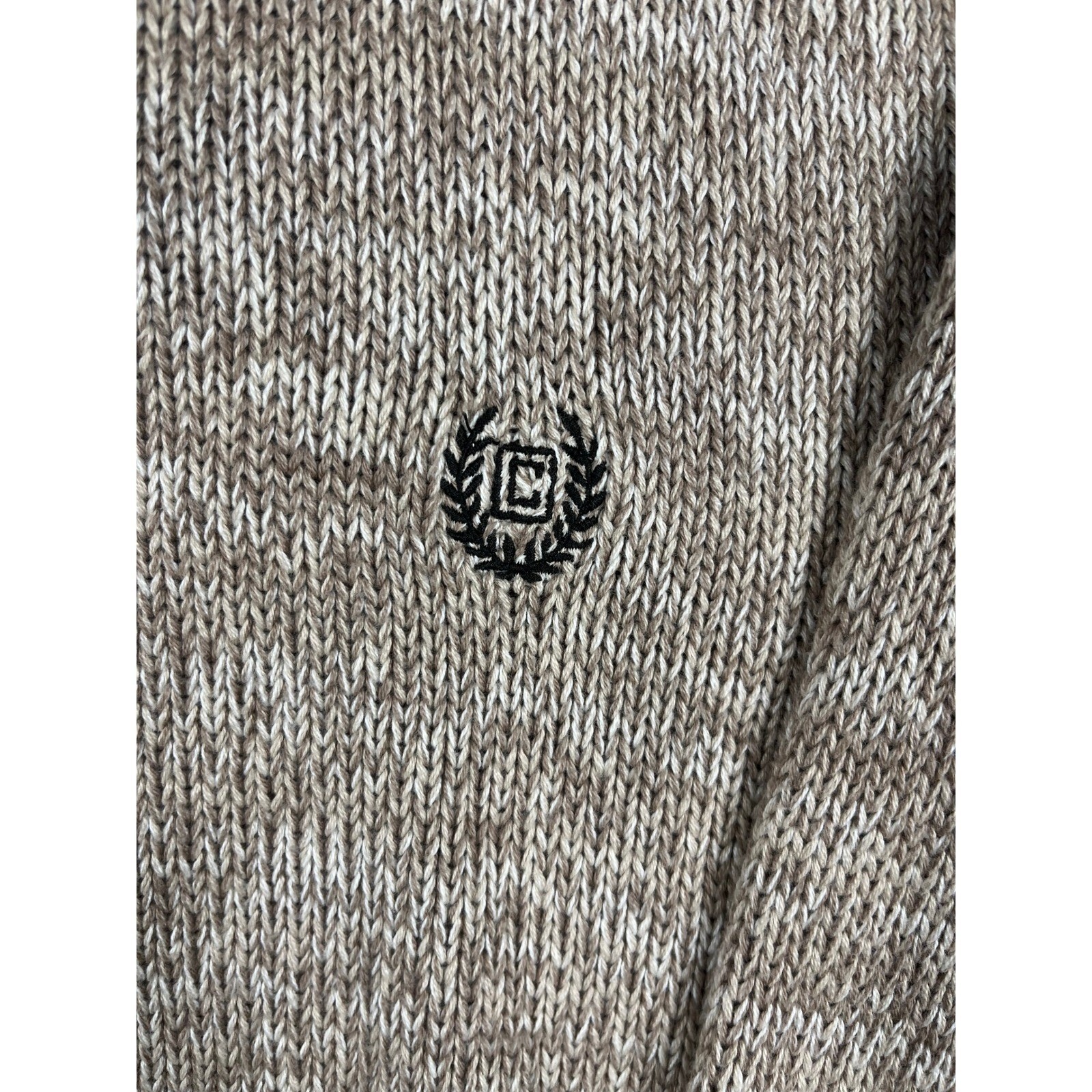 Chaps Men's Tan Speckled Knit Mock Neck Button Sweater Elbow Patches XXL