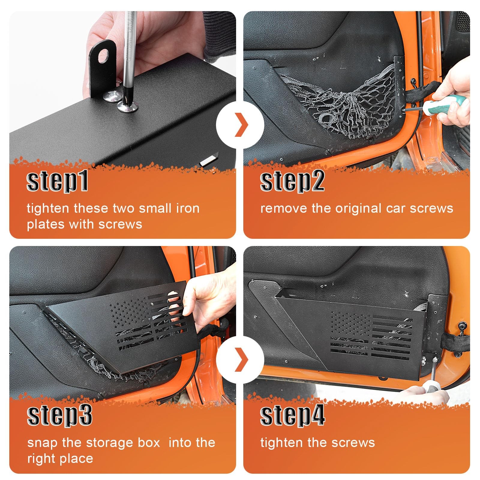 Metal Front Door Pocket Storage Box Compatible with 2007-2018 Jeep Wrangler J...