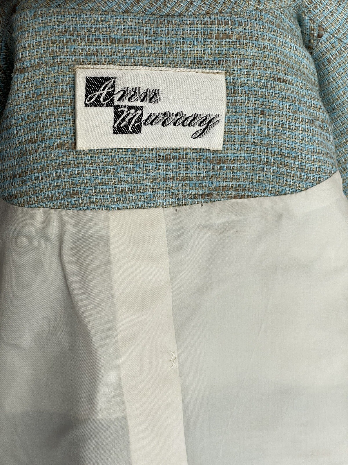 как выглядит VTG 60s Suit Skirt Set Tweed Woven Blue Gray Lined Ann Murray SZ 10 READ фото