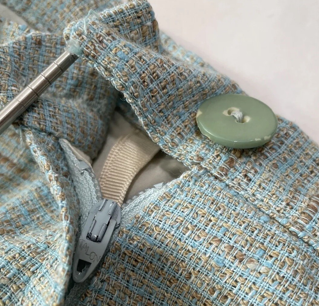VTG 60s Suit Skirt Set Tweed Woven Blue Gray Lined Ann Murray SZ 10 READ