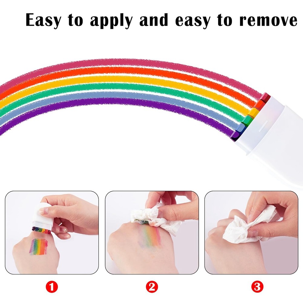 как выглядит 2 Pcs Face Body Paint-Gay Pride Day Flag Face Paint-LGBT Stripe Crayon5197 фото