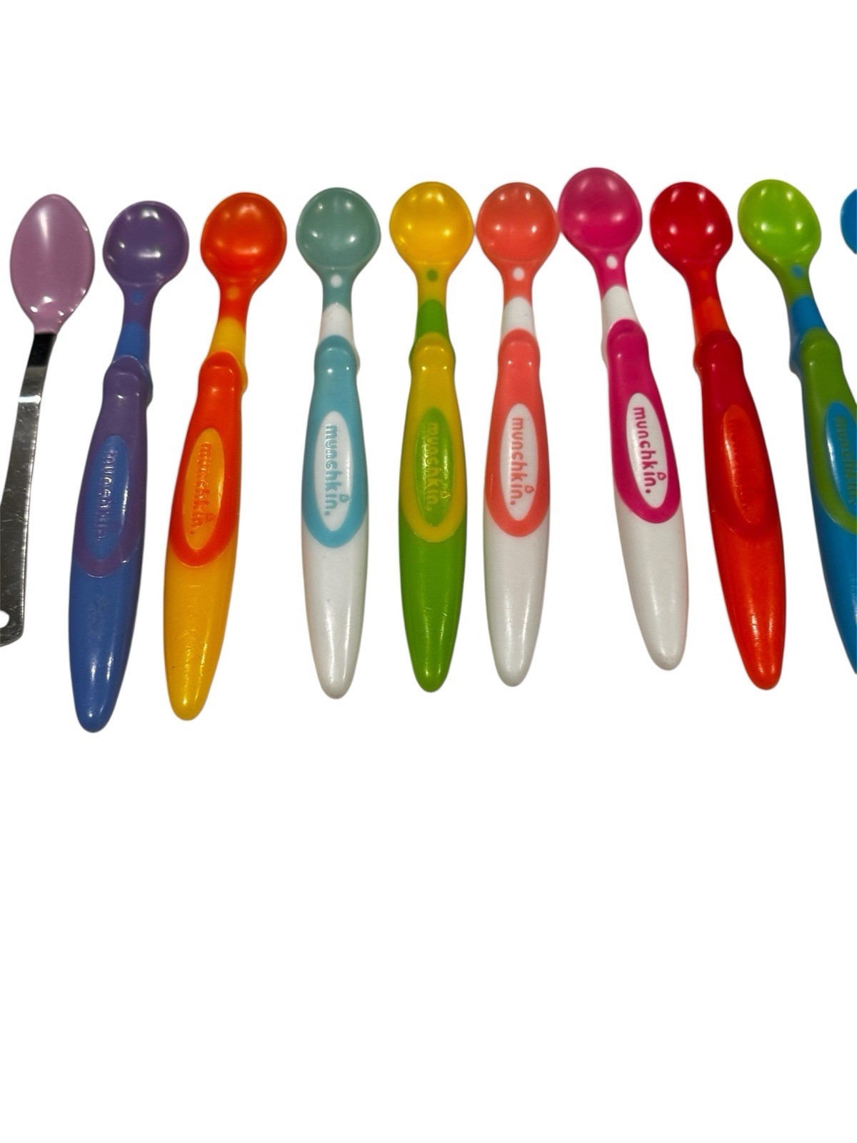 Munchkin Baby Spoons Lot Of 12 Colorful Plastic Stainless Steel EUC
