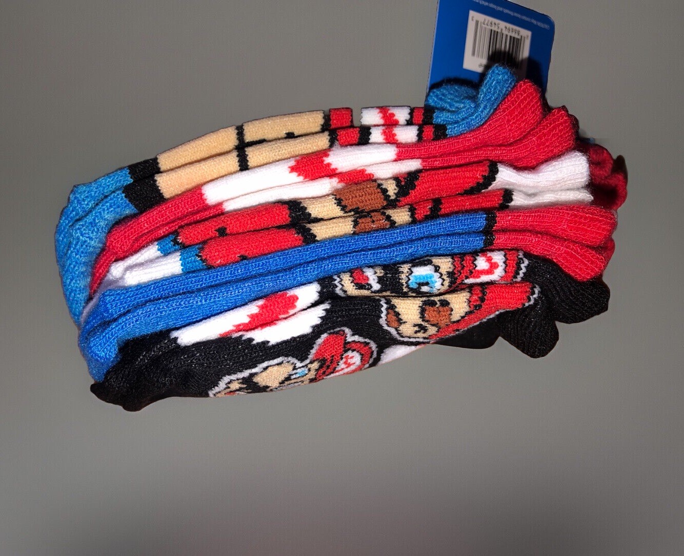 NEW SUPER MARIO BROS. Boys Socks - 5 Prs- Youth Shoe Size 7.5-3.5 Nintendo