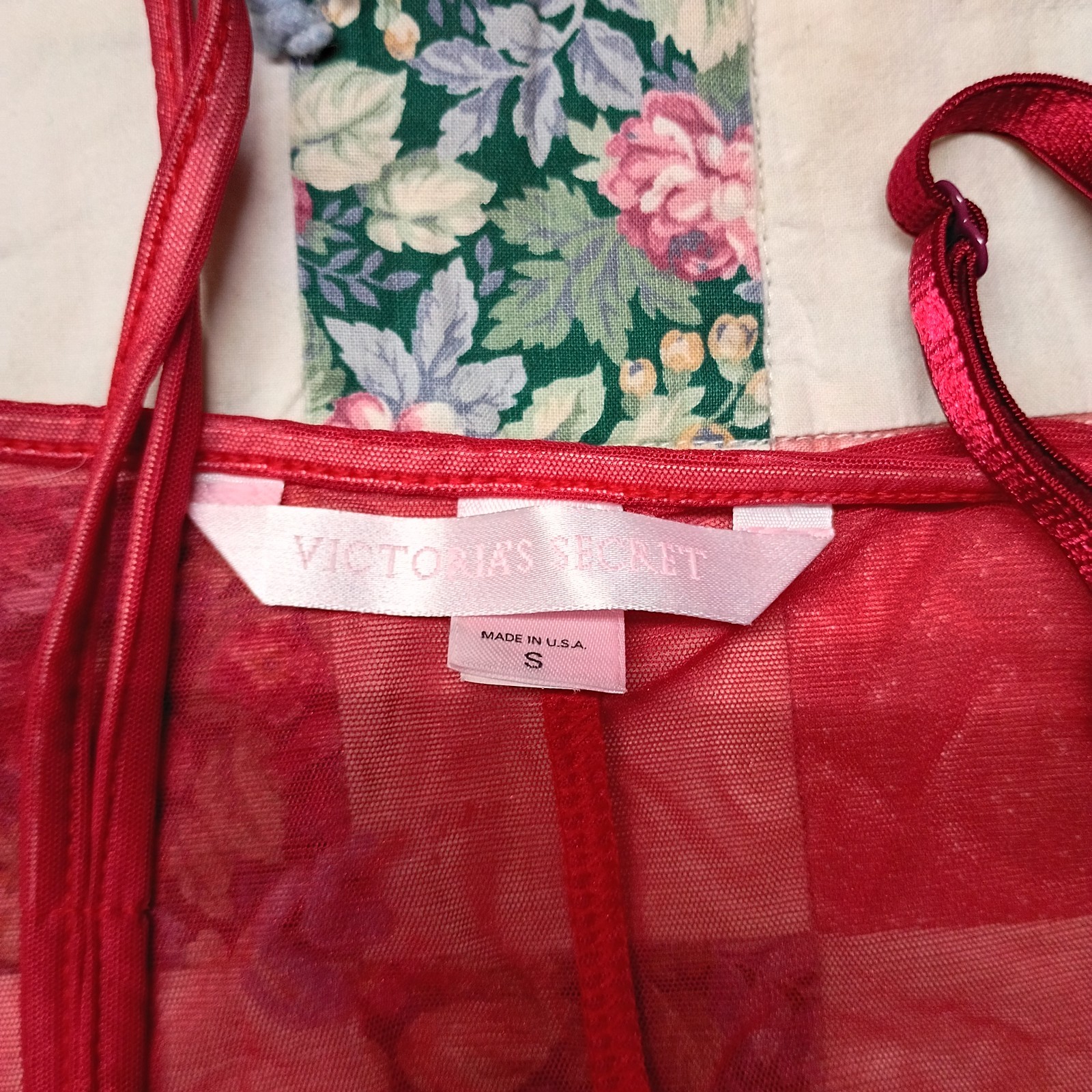 как выглядит Victoria Secret Red Sheer Babydoll Chemise Size Small With Lace Hem Trim фото