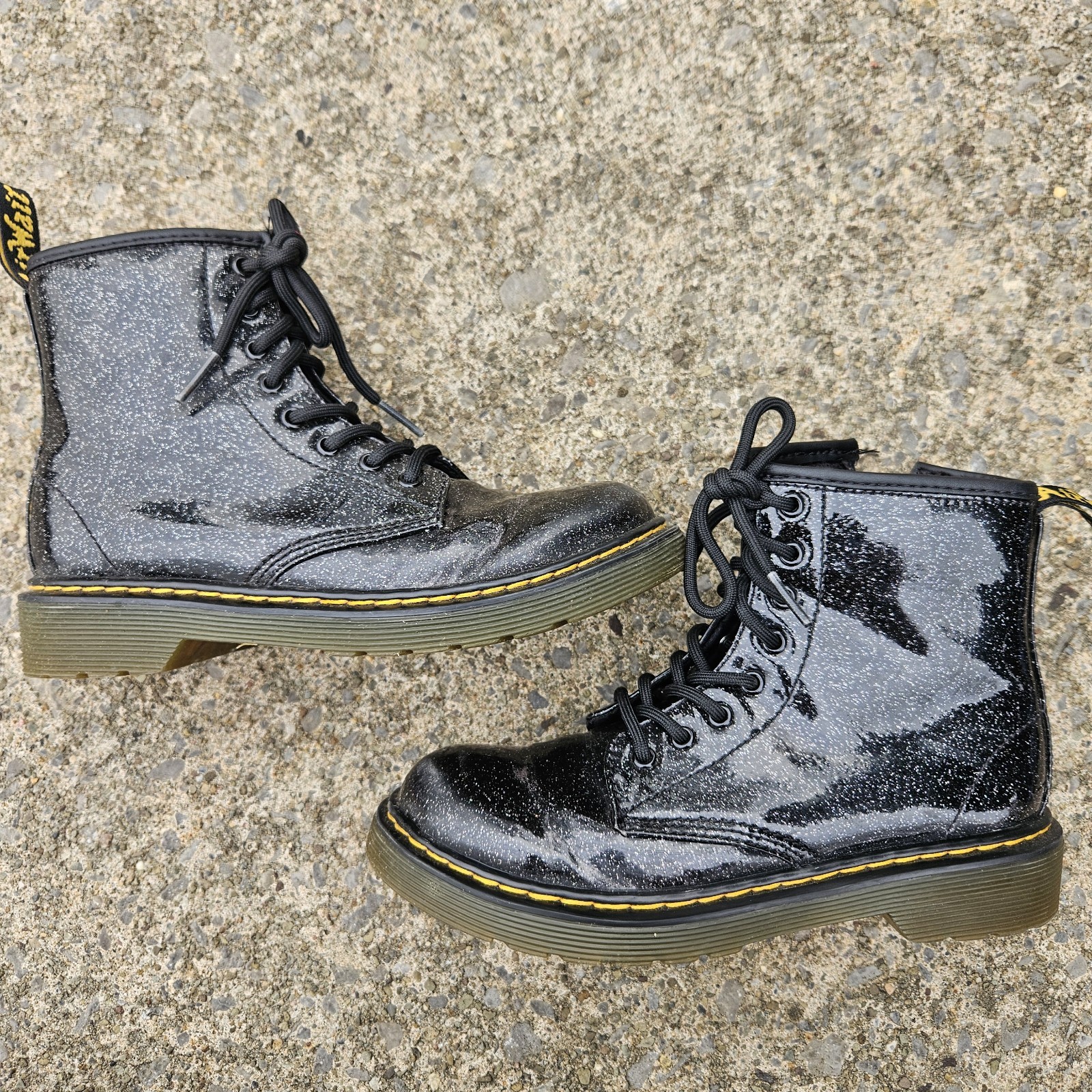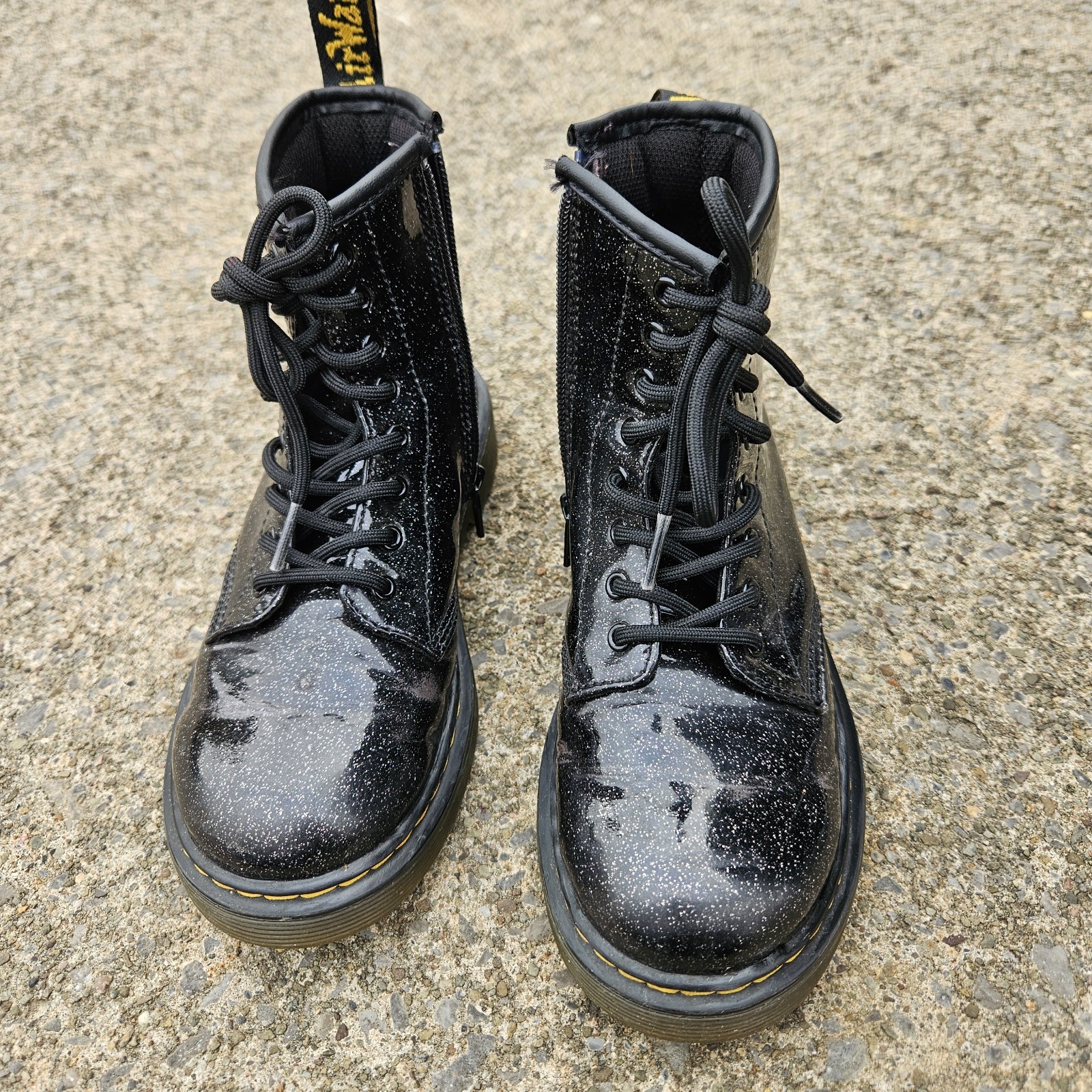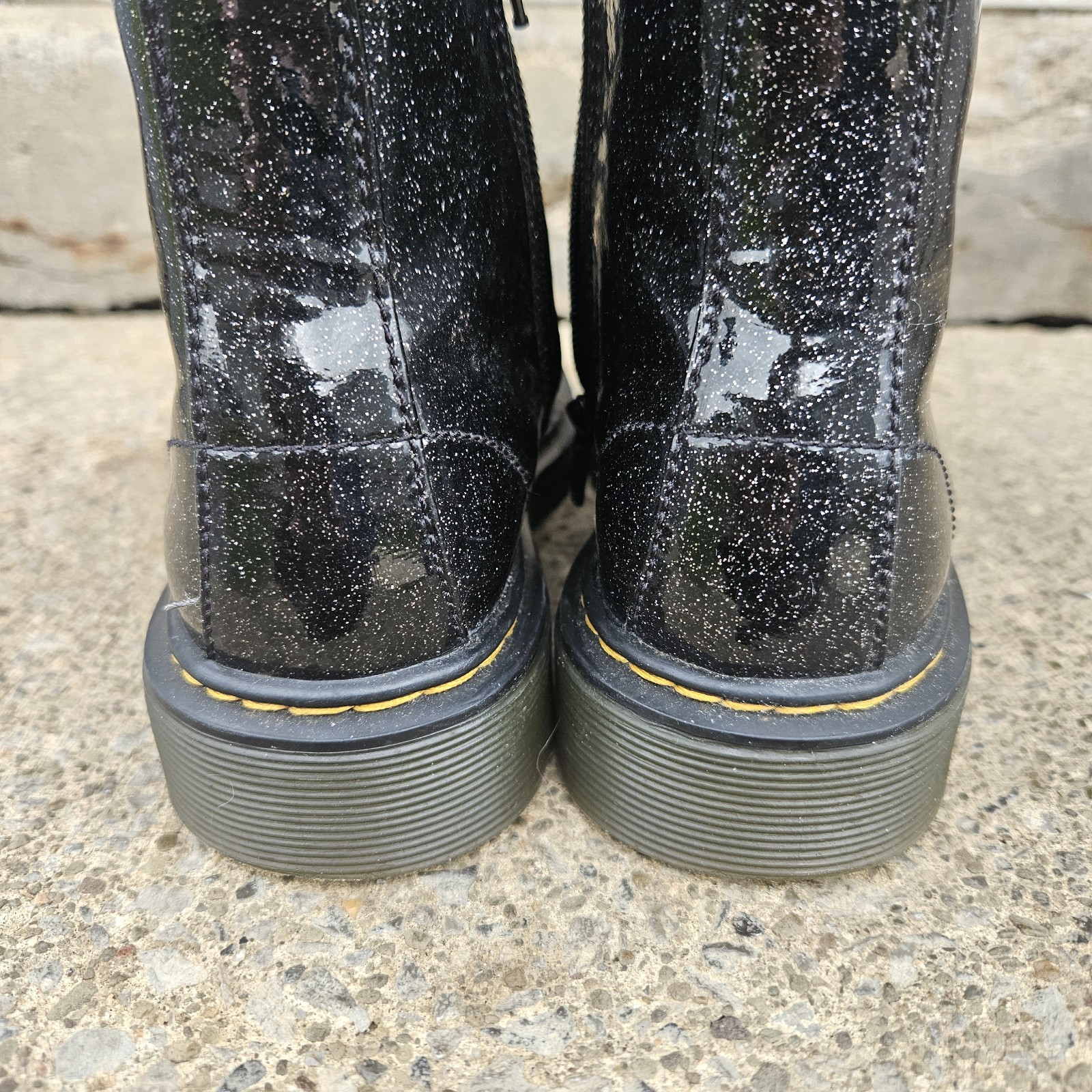 Doc Martens Sparkle Combat Boots Girls Sz 2 Iridescent Black Glitter Airwair Zip