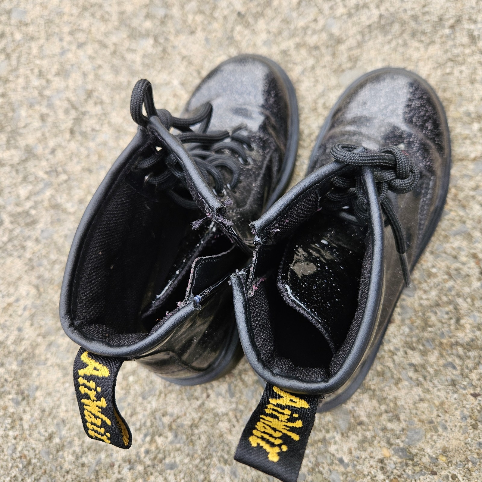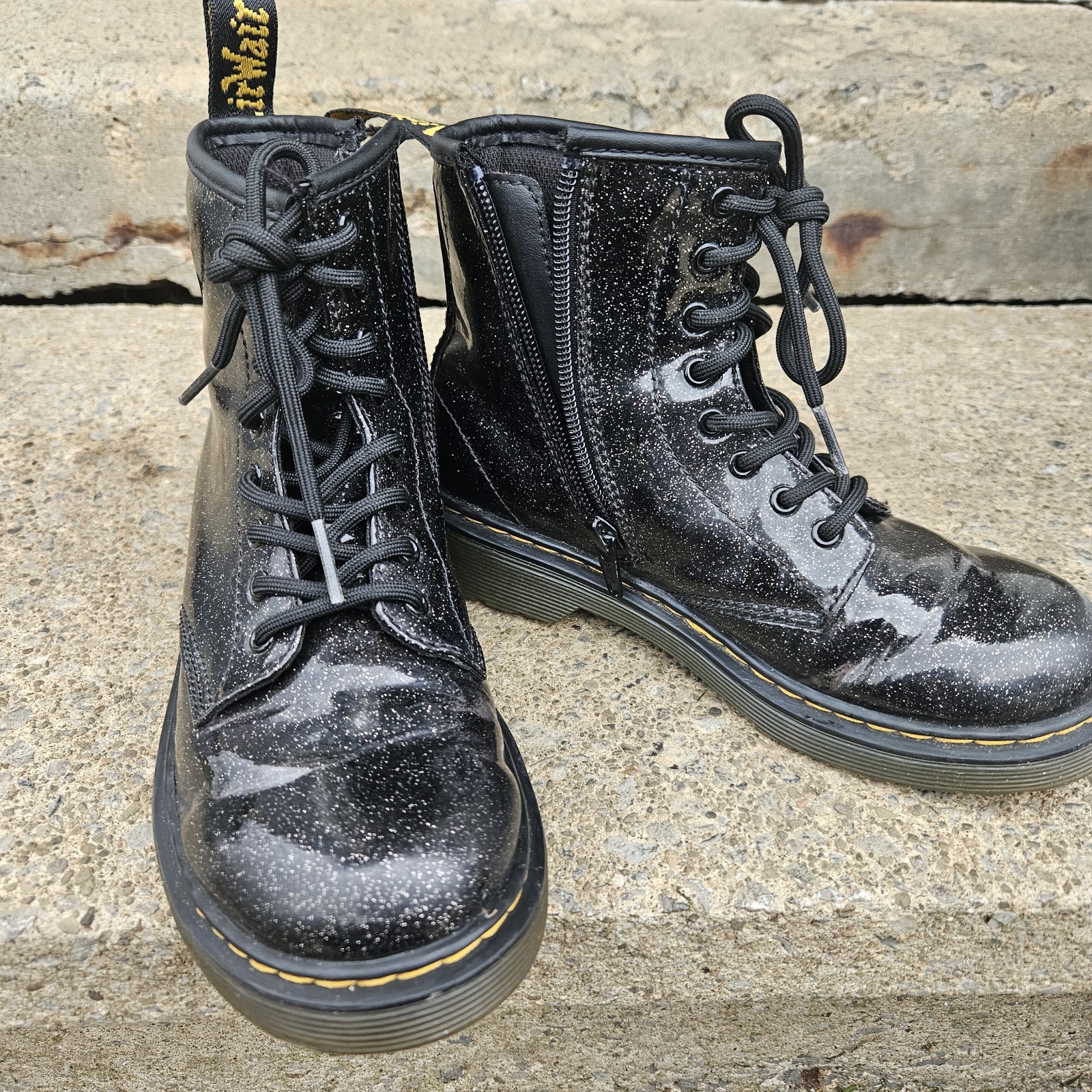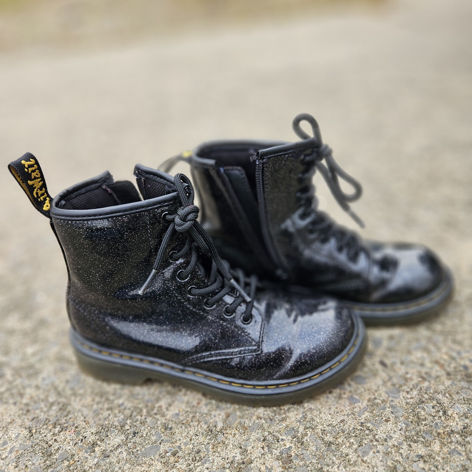 Doc Martens Sparkle Combat Boots Girls Sz 2 Iridescent Black Glitter Airwair Zip