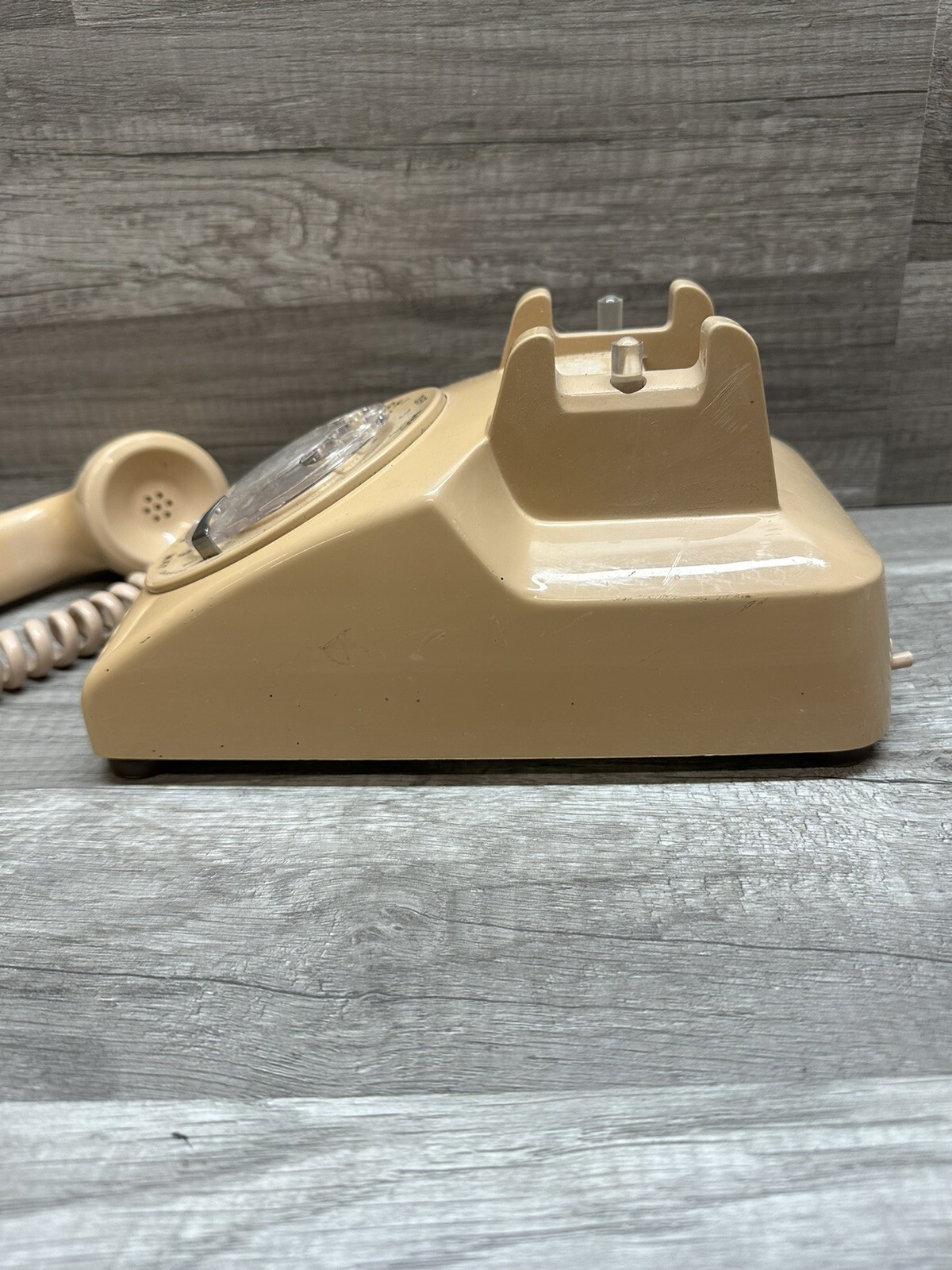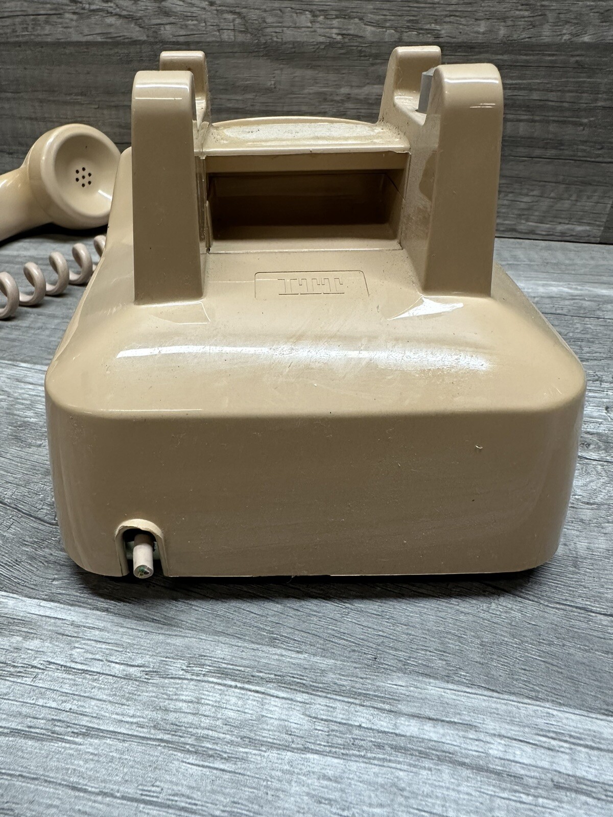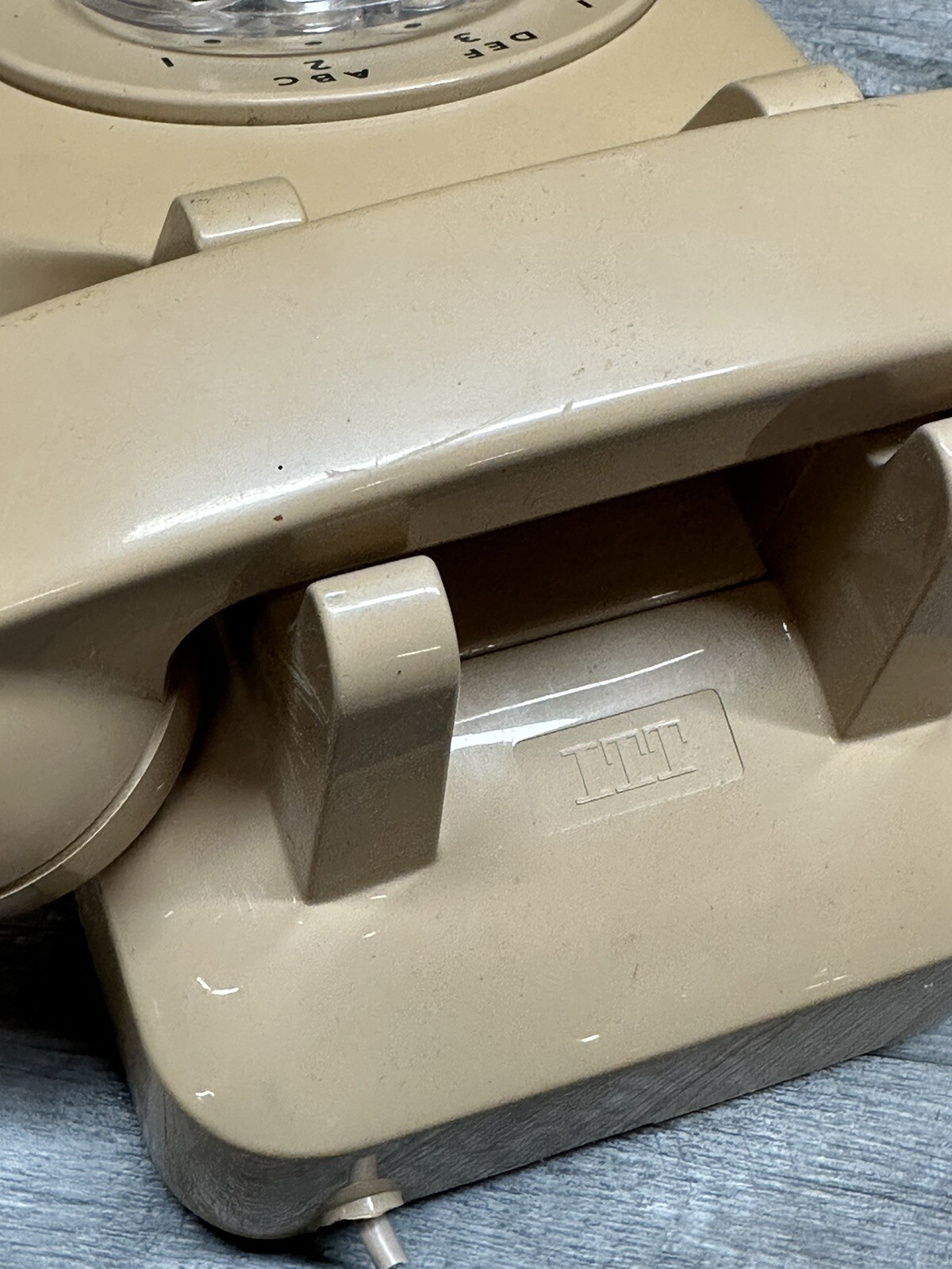 Vintage ITT Rotary Desk Telephone Beige Tan Pink Dial Phone Untested