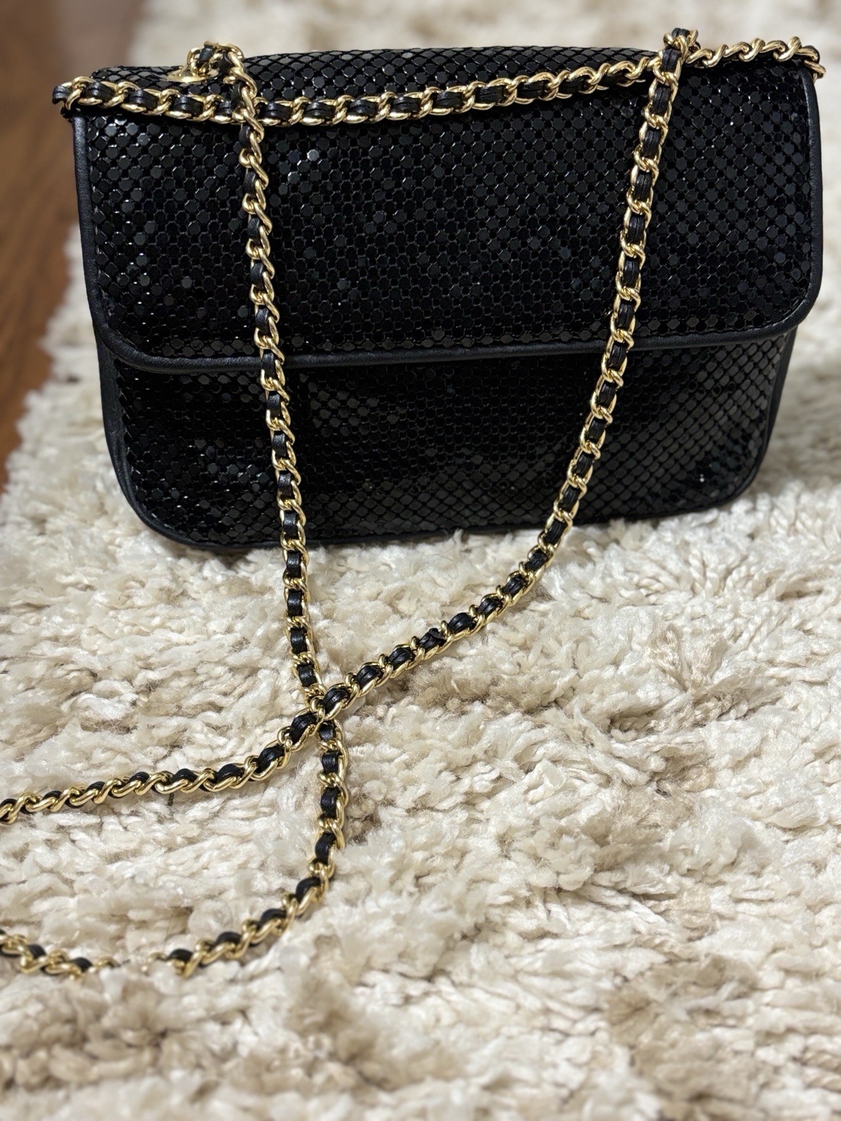 Vintage Whiting Davis Black Metal Mesh Evening Bag Gold Chain Shoulder Purse