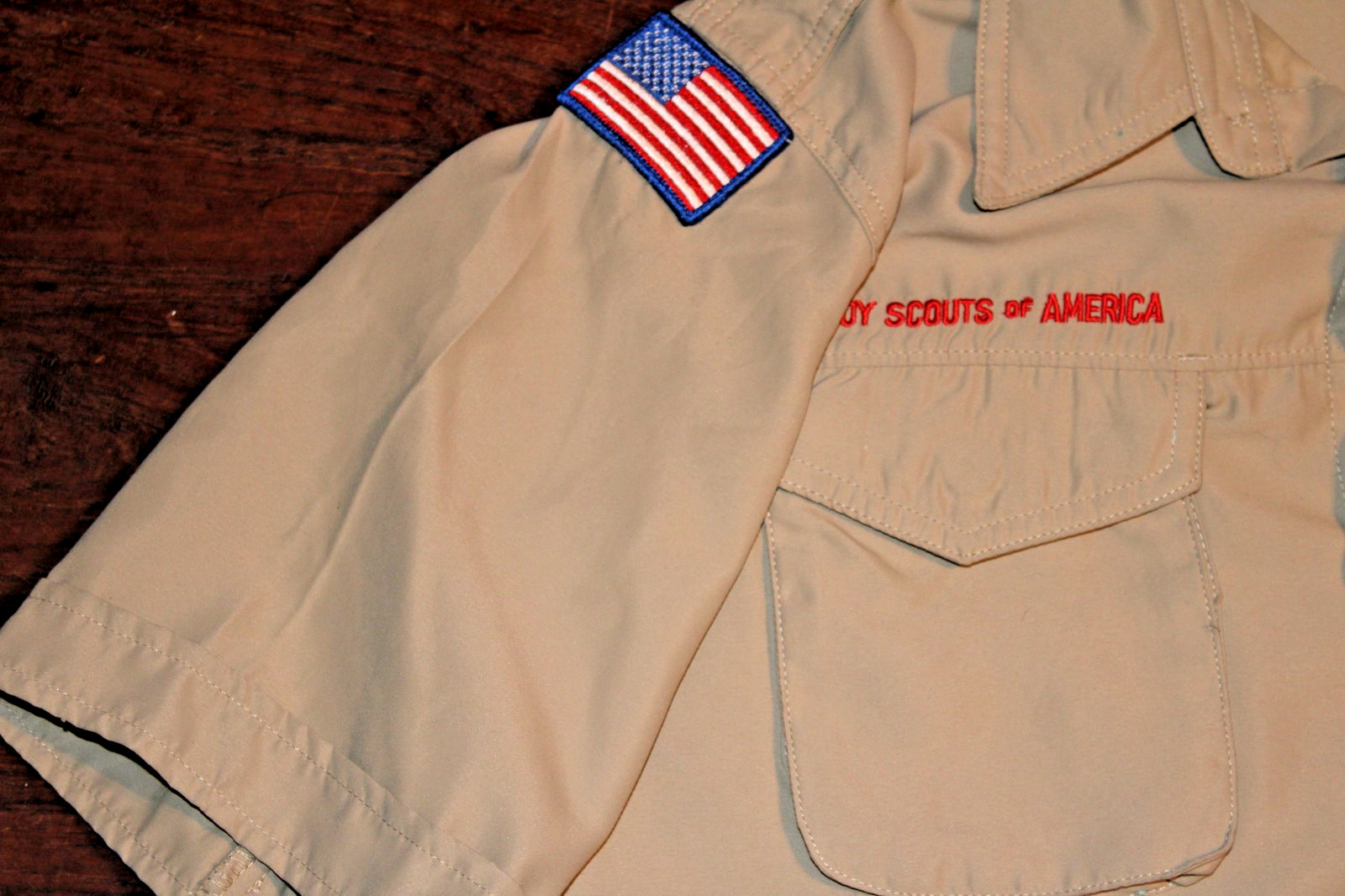Boy Scouts of America BSA Men's Shirt Tan Small Vented Poly Microfiber Sewn Patc
