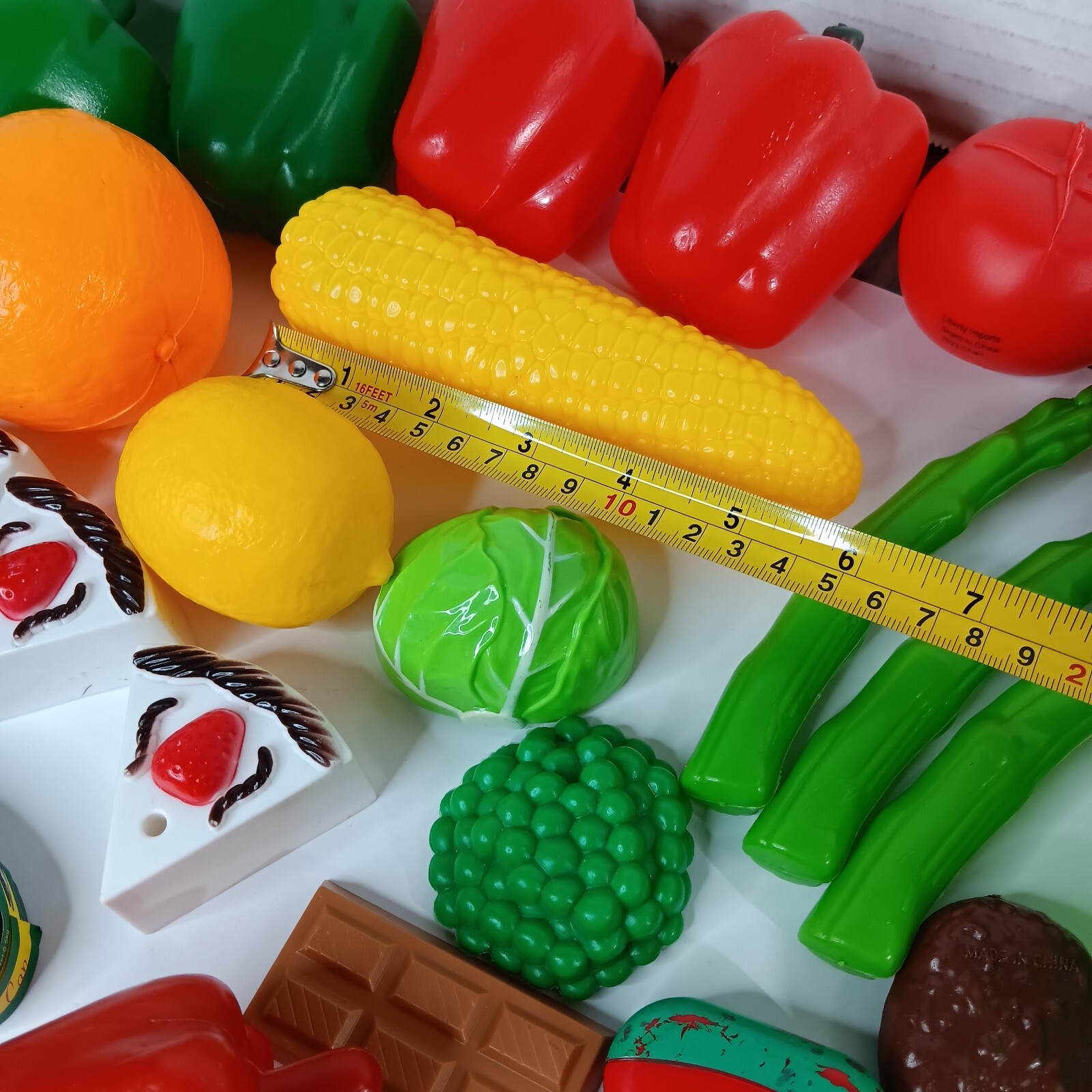 как выглядит Plastic Toy Pretend Play Food Lot Fruits Vegetables Cookies Pizza French Fries фото