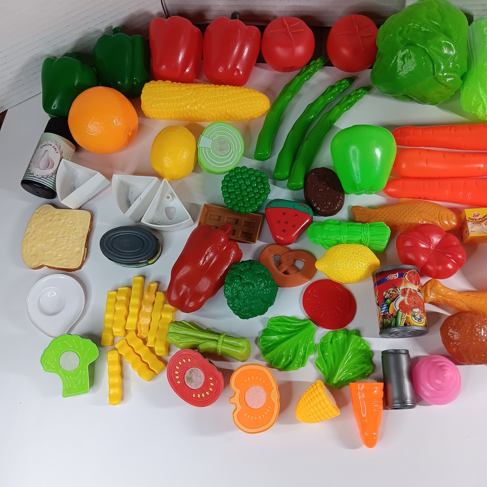 Plastic Toy Pretend Play Food Lot Fruits Vegetables Cookies Pizza French Fries