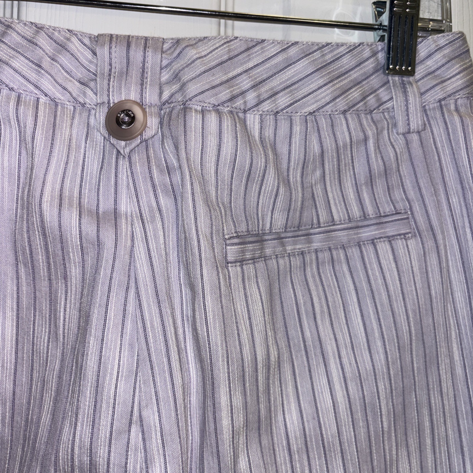 St John Sport W-10 Cropped Pants Pale Violet Stripes Buttons On Belt Loops