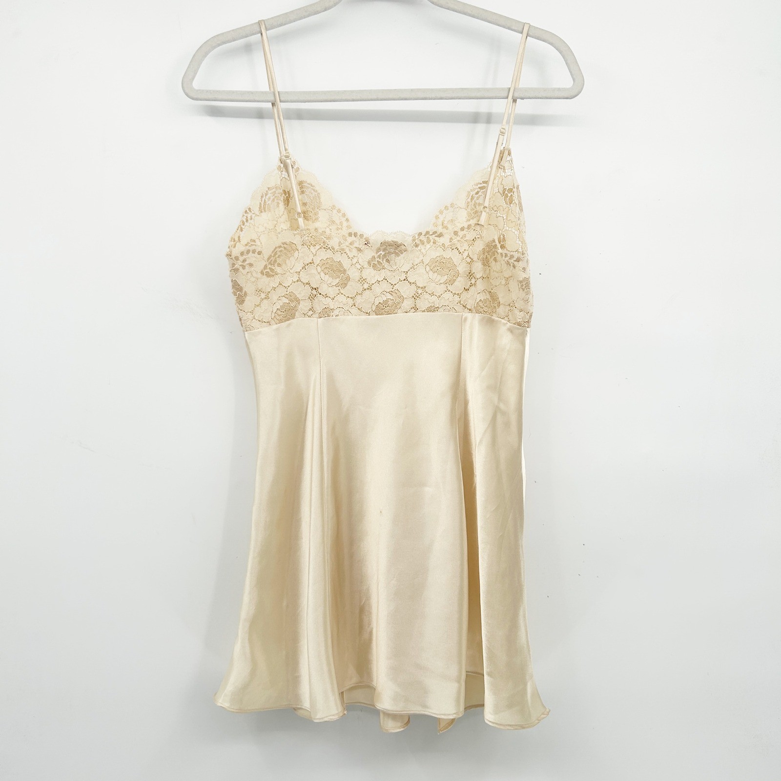 Victoria's Secret Womens Coquette Bridal Champagne Lace Trim Satin Slip Dress S