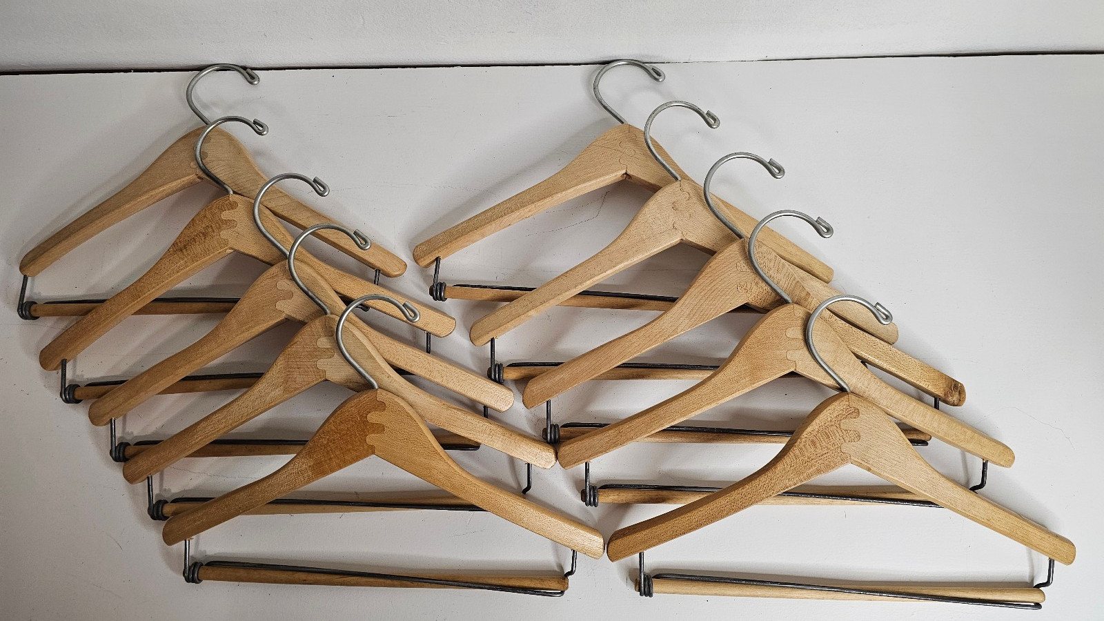 как выглядит Vtg Batts Natural Wood Wishbone Hangers 12.5" For Youth Sizes 8-14 NOS Lot Of 10 фото