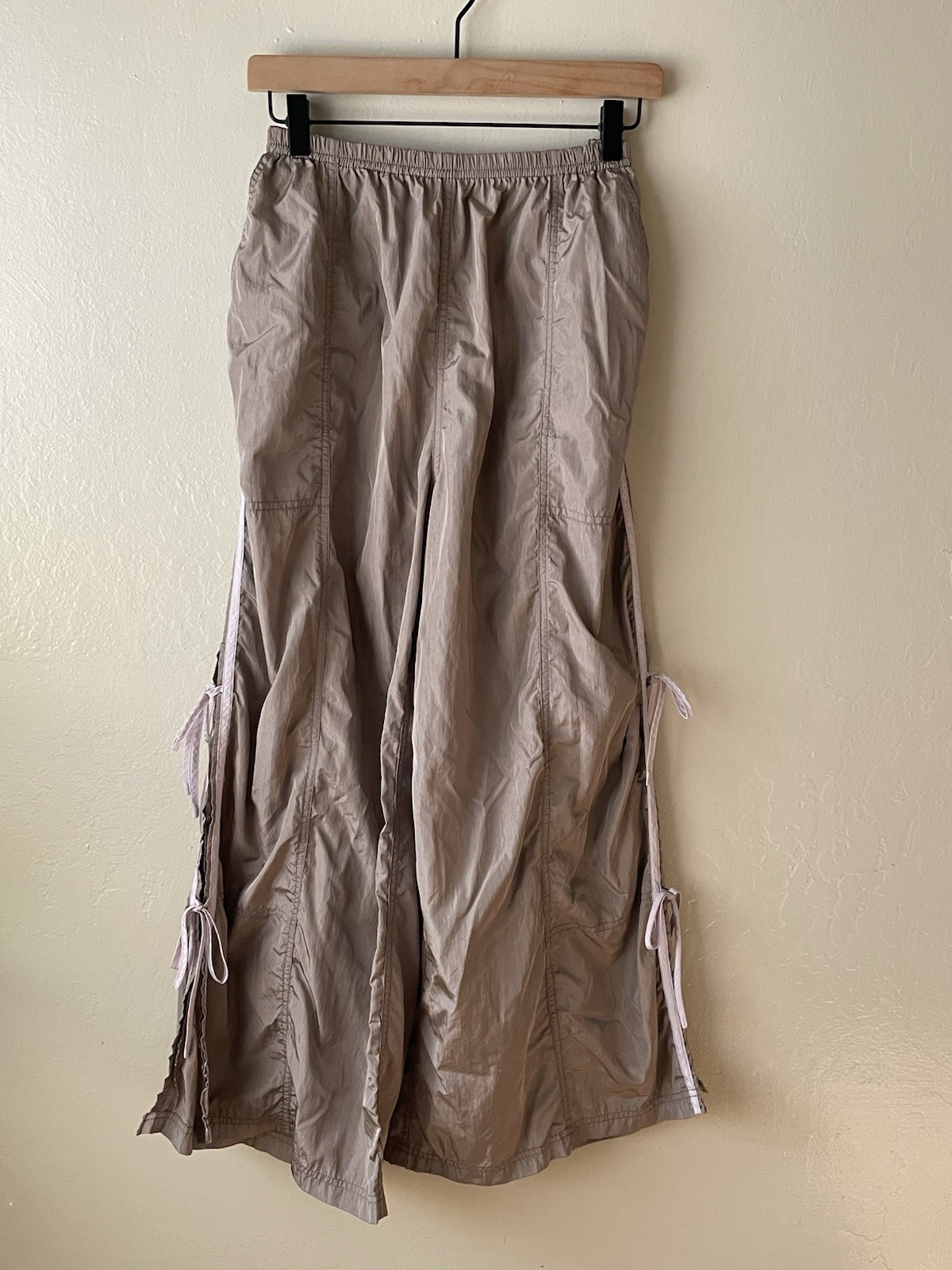 Daily Practice Anthropologie Taupe Pink Stripe The Bowline Parachute Pants Sz L